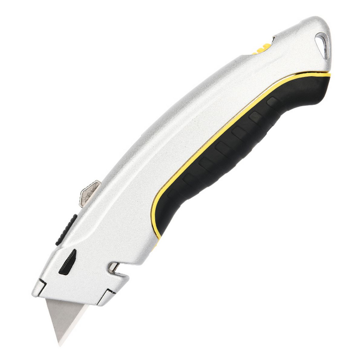 В комплекте с ножом идут три лезвия, что позволяет использовать его в течение длительного времени без необходимости замены. Алюминиевый корпус с резиновой вставкой обеспечивает удобство и надёжность при работе.