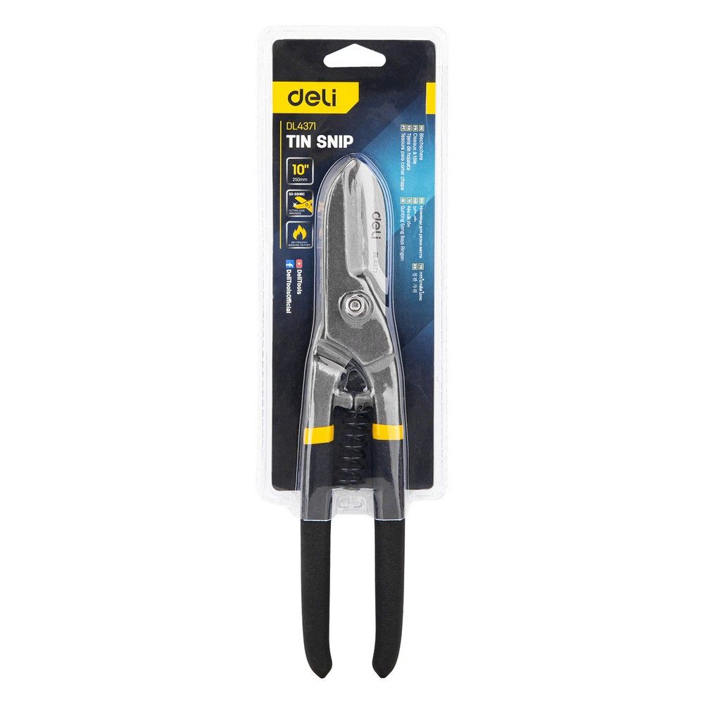 Ножницы по металлу прямые Deli DL4371 250мм, высокоуглеродистая сталь 55, прорезиненная рукоятка