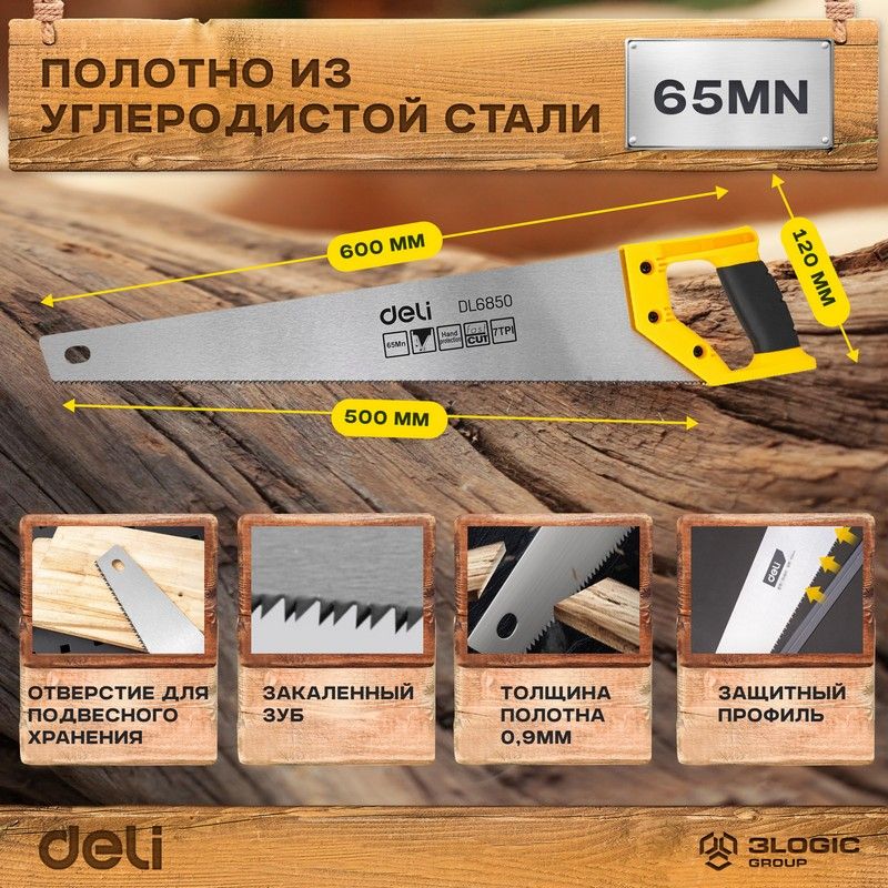 Ищете надёжный инструмент для работы с деревом? Тогда вам подойдёт ножовка Deli DL6850. Она имеет следующие особенности: