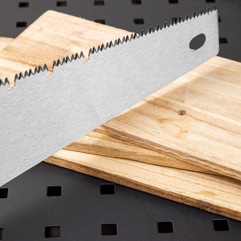 - Зубцы, шлифованные с трёх сторон. Благодаря этому ножовка режет быстро и ровно.