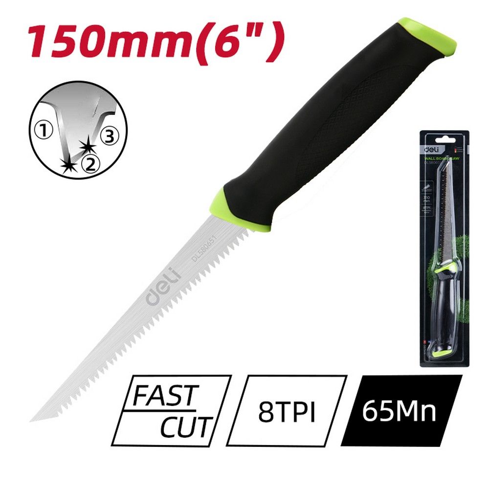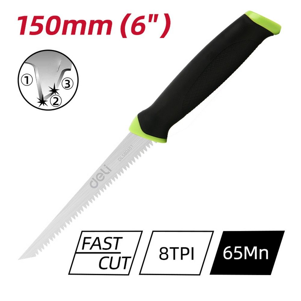 Ножовка выкружная по гипсокартону Deli DL580651 150мм, сталь 65Mn, 8TPI, шлифовка зубцов с 3-х сторон