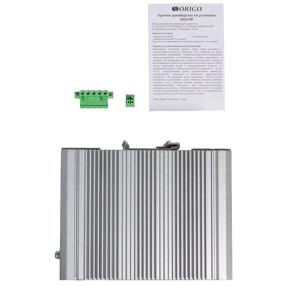Коммутатор ORIGO OI2210P/185W/A1A Промышленный неуправляемый PoE-коммутатор 8x1000Base-T PoE+, 2x1000Base-X SFP, PoE-бюджет 185 Вт