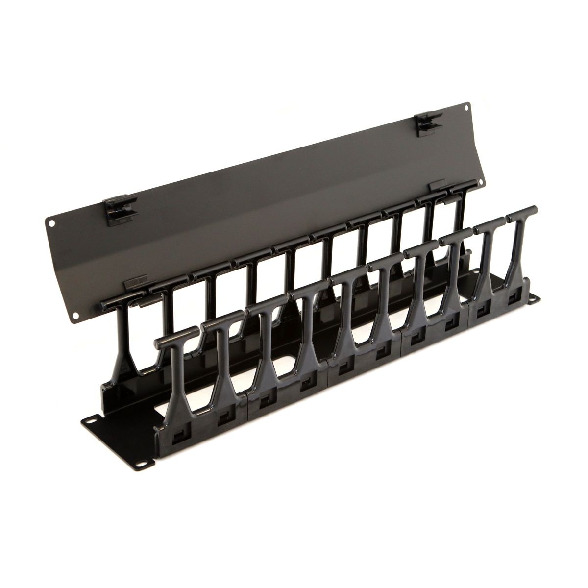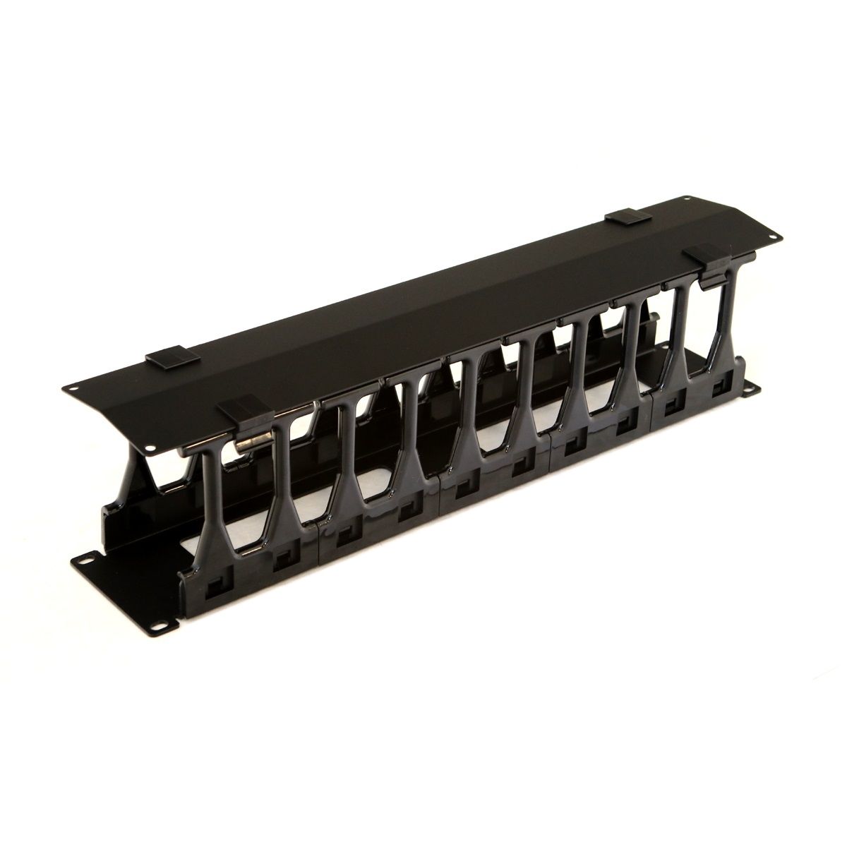 Органайзер Hyperline CMF-2U-FPL106-MCOV-RAL9005 Кабельный организатор с крышкой, глубина 106 мм, 19", 2U