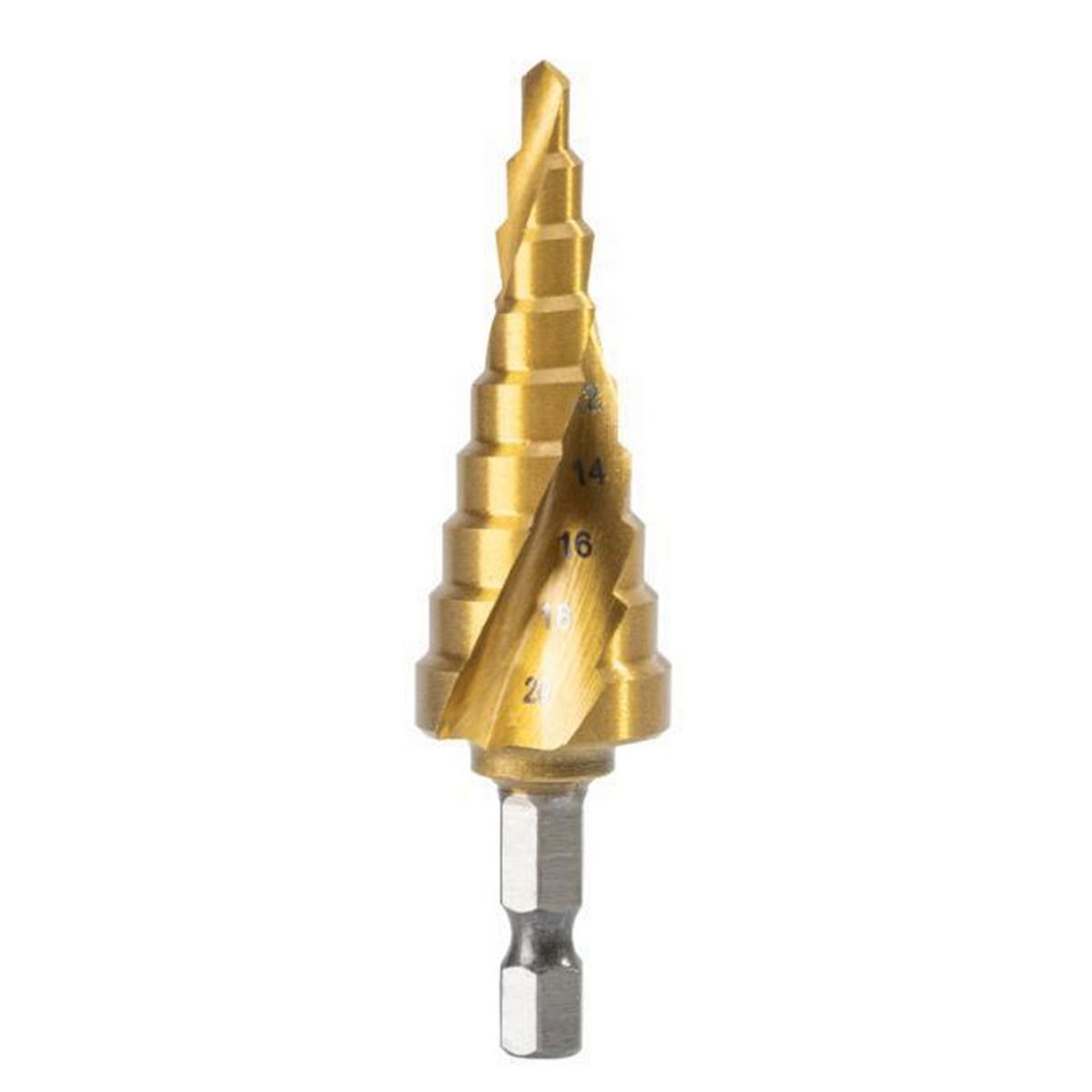 Оснастка Deli Сверло ступенчатое по металлу DH-JTZ020-E2 (4-20мм, HSS M2, спиральная канавка, шестигранный хвостовик)