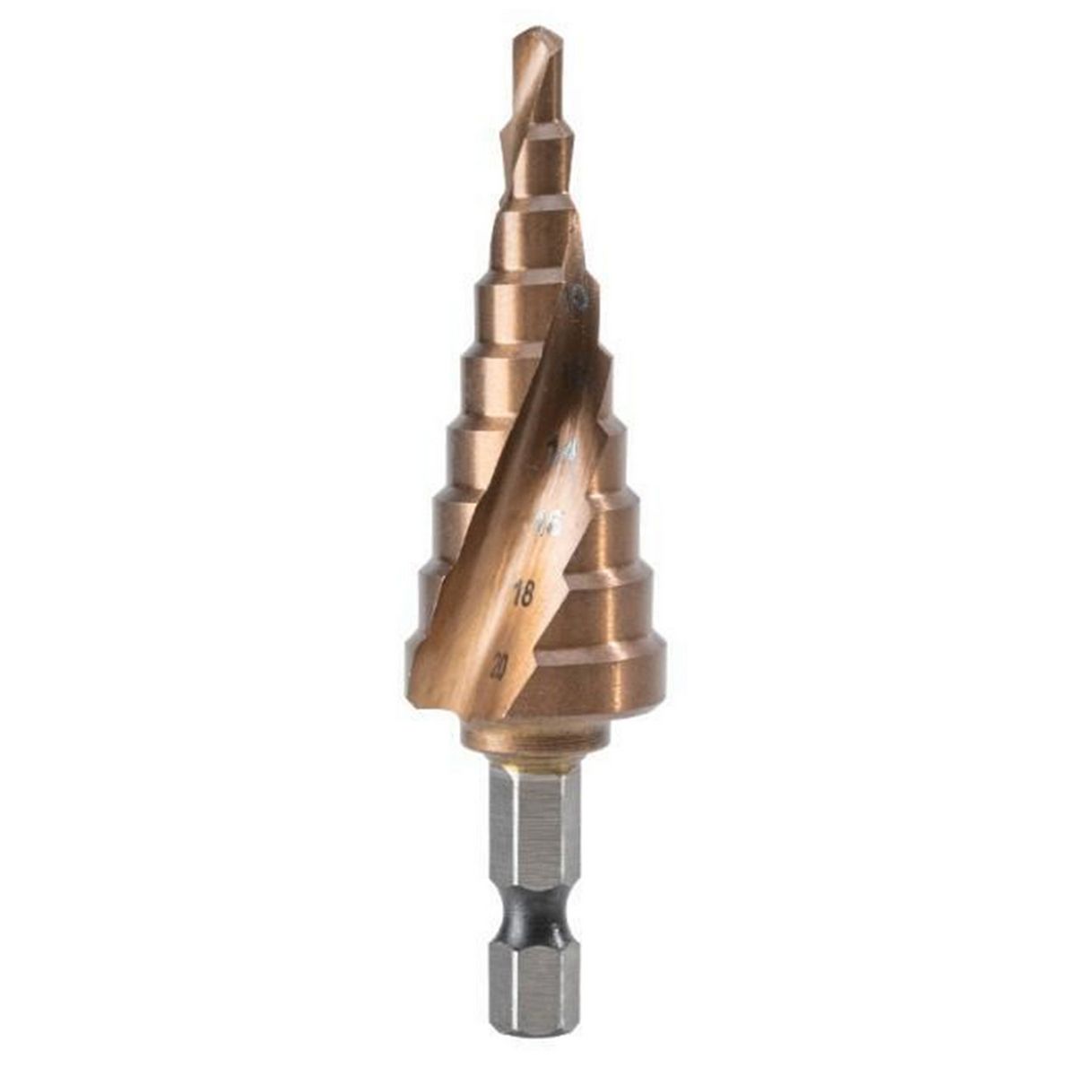 Оснастка Deli Сверло ступенчатое по металлу DH-JTZ020-E3 (4-20мм, HSS M35, спиральная канавка, шестигранный хвостовик)