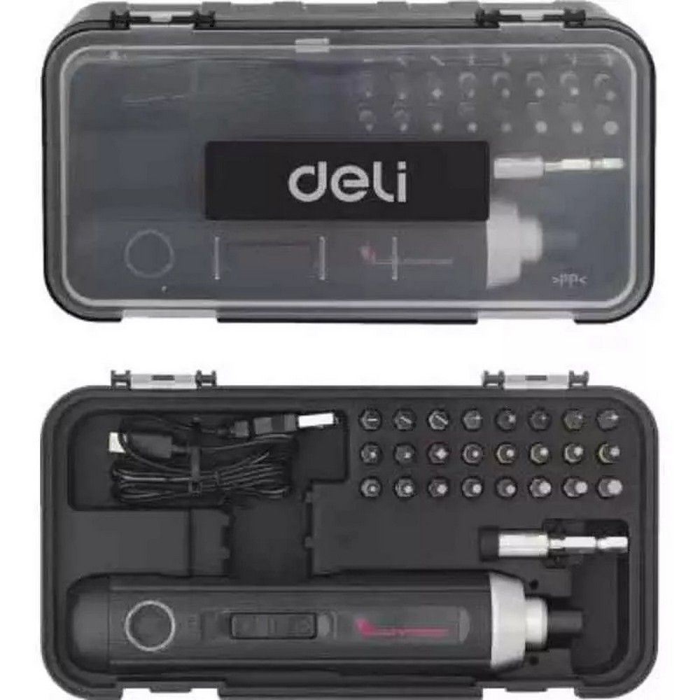 Отвертка аккумуляторная Deli DL-DP04-E1B2 (3,6В, 2А*ч, 5Нм, набор бит 24 шт, пласт. кейс)