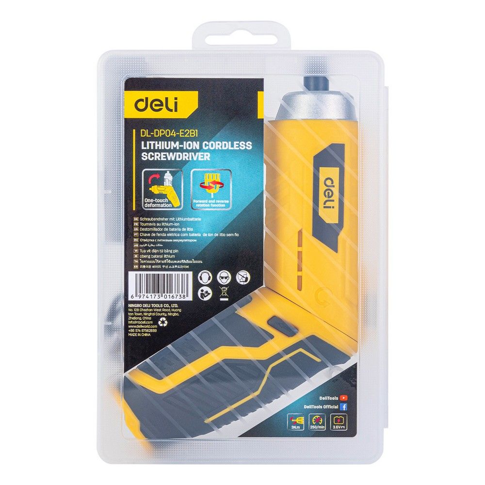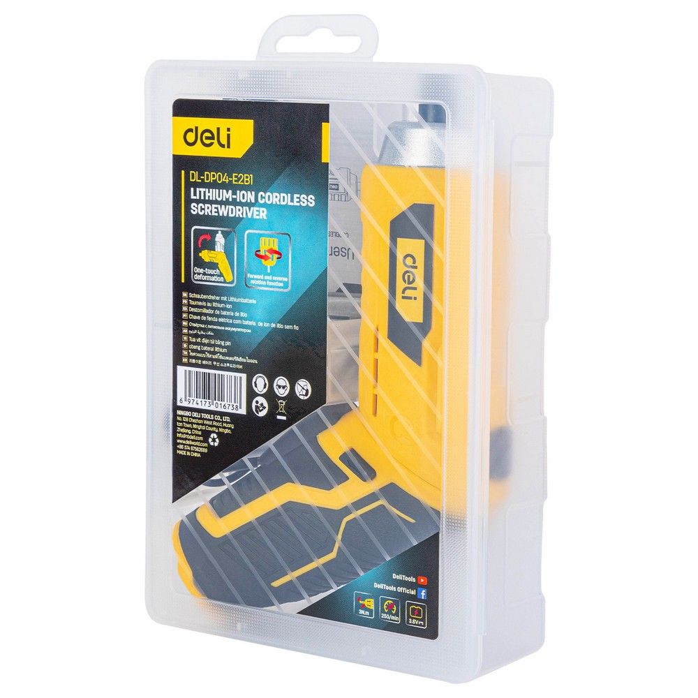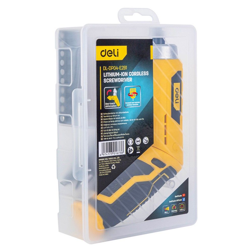 Отвертка аккумуляторная Deli DL-DP04-E2B1 (3,6В, 1,5А*ч, 3Нм, набор бит 10 шт, пласт. кейс)