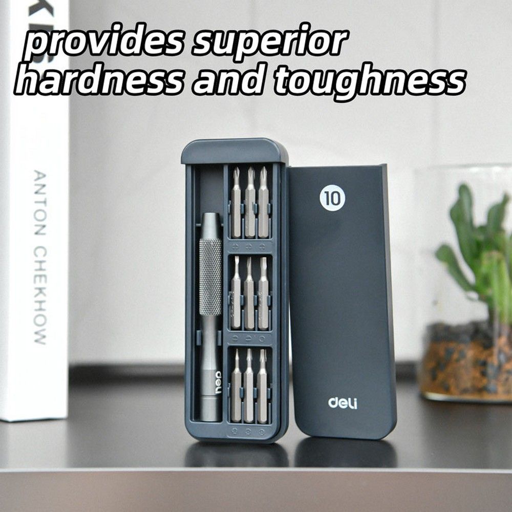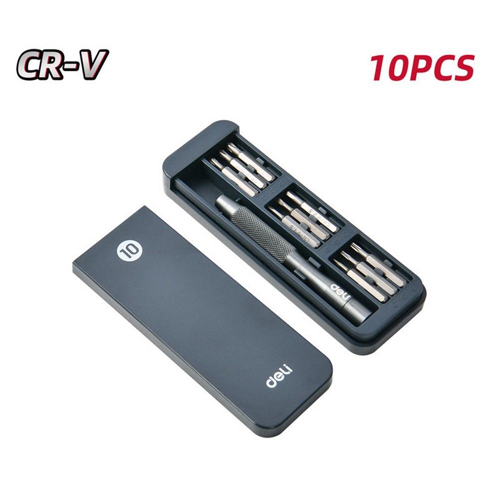 Набор прецизионных отверток Deli DL241010J (отвертка + 9 бит), сталь Cr-V