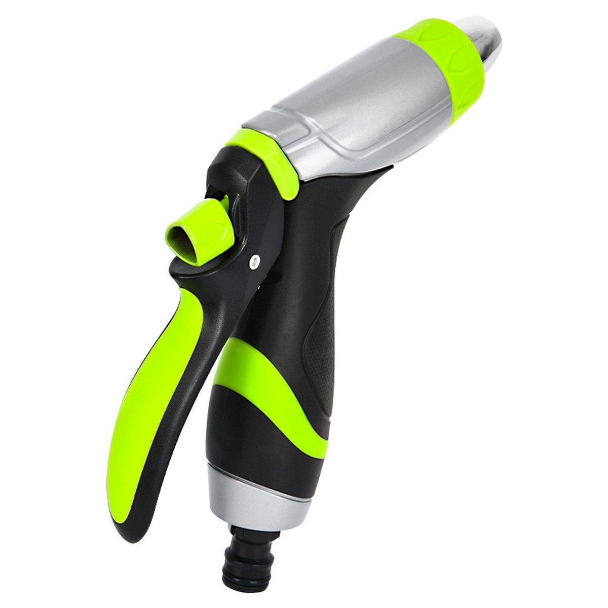 Диаметр шланга составляет 3/4 дюйма, что обеспечивает совместимость с большинством стандартных садовых шлангов. Прорезиненная рукоять обеспечивает удобный и надёжный хват, а корпус из цинкового сплава гарантирует долговечность и устойчивость к коррозии.
