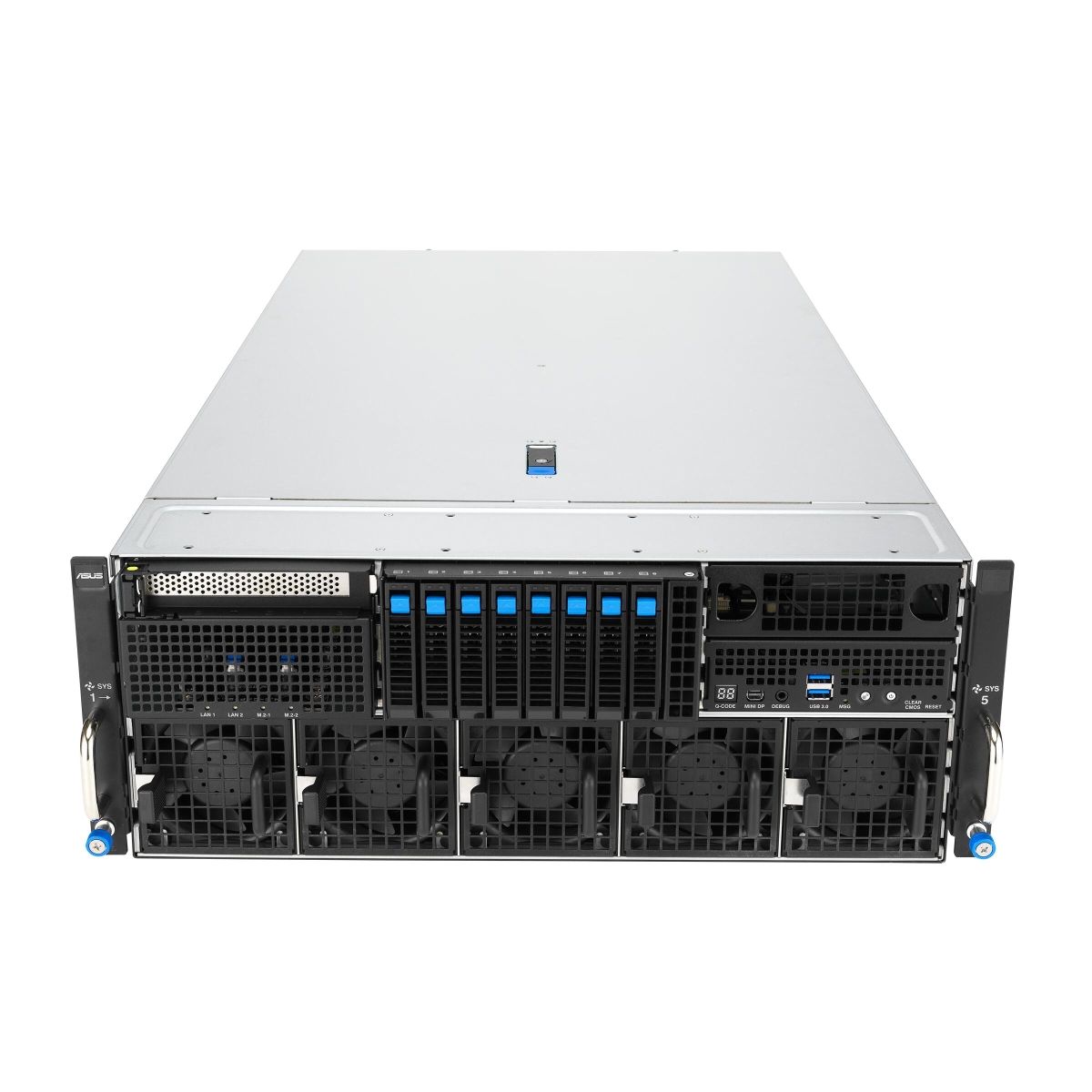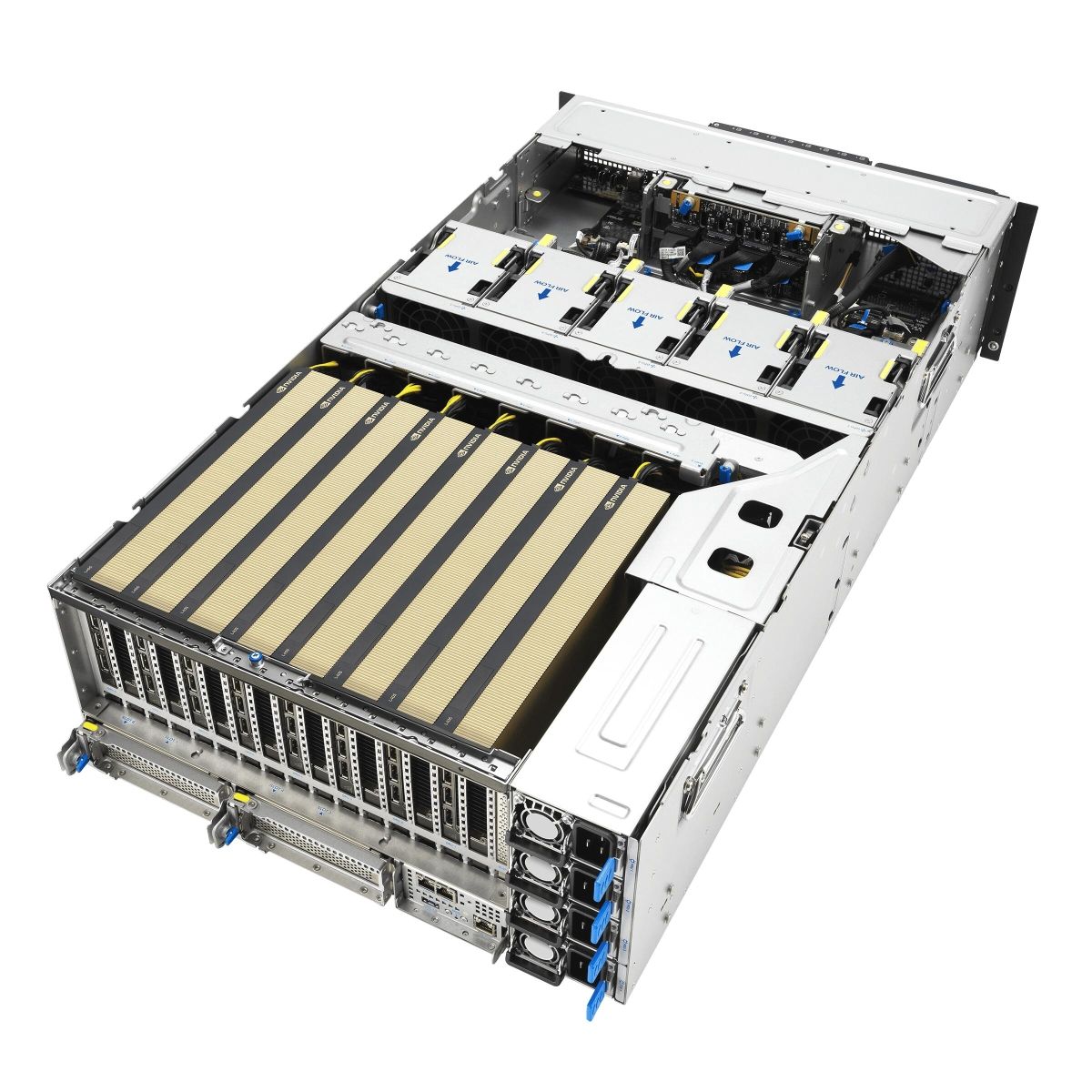 До восьми двухслотовых графических ускорителей (NVIDIA H200, NVIDIA RTX Pro 6000 Blackwell Server Edition, NVIDIA RTX Pro 4500 Blackwell Server Edition)