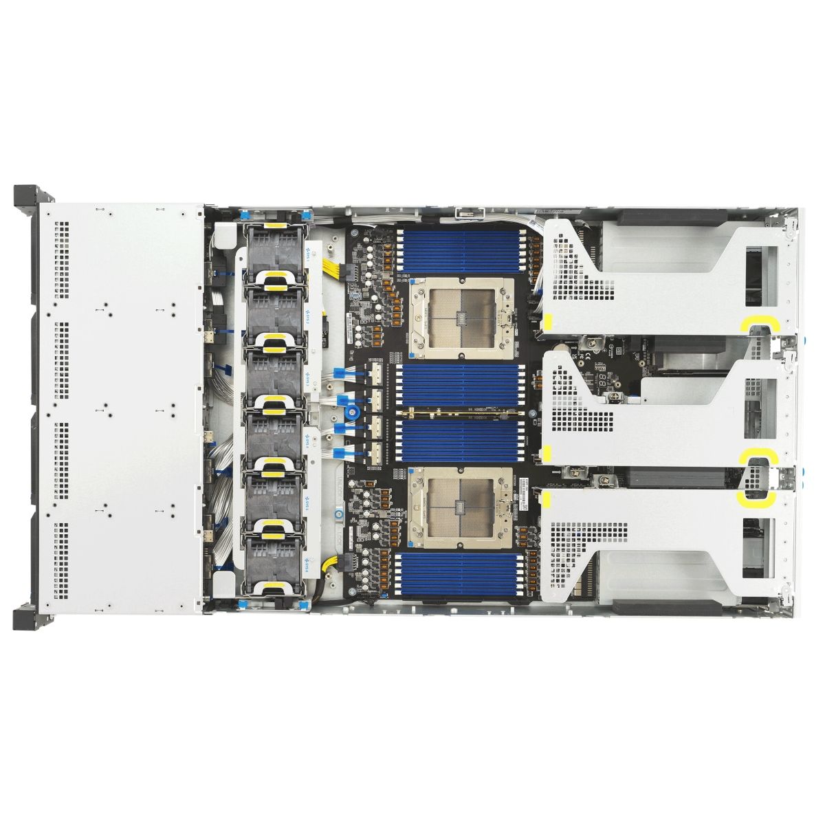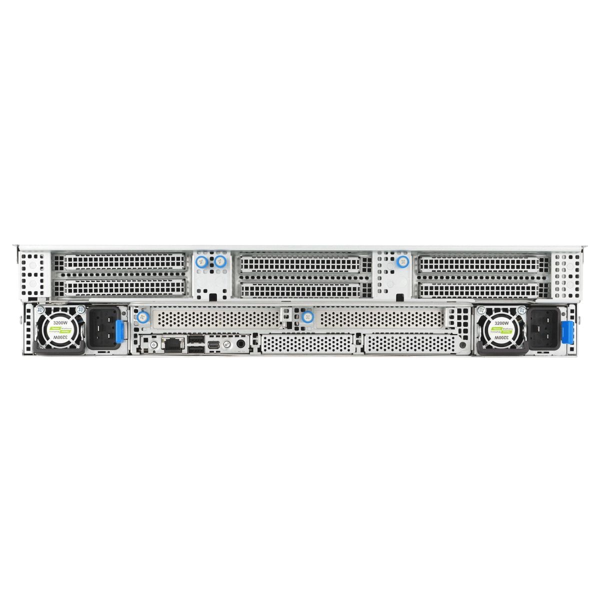 Всего 10 слотов PCIe. Возможно одновременное использование либо 3 слотов расширения PCIe x16 FHFL, либо 6 слотов PCIe x8 FHFL. Два слота из PCIe x16 - для OCP3.0 (SFF). Один тыловой Debug порт. On-Board ASM12-iKVM for KVM-over-IP