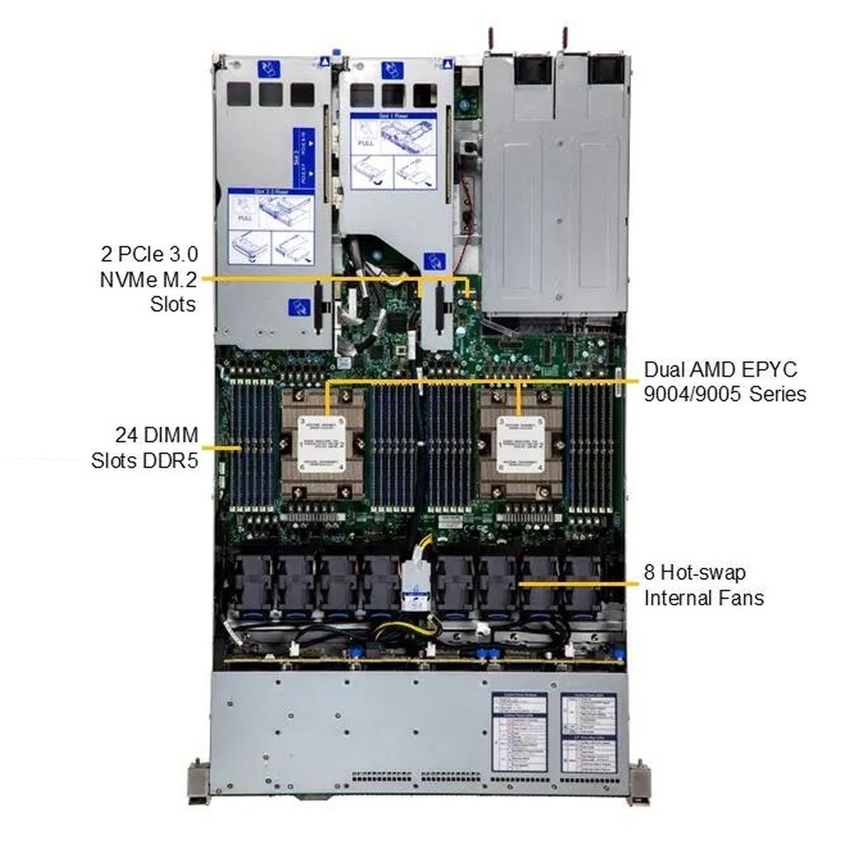 Слот PCIe5.0 x16 - для AIOM (OCP3.0 совместим). 32x SATA3 Hybrid через MCIO, 1 AIOM слот.