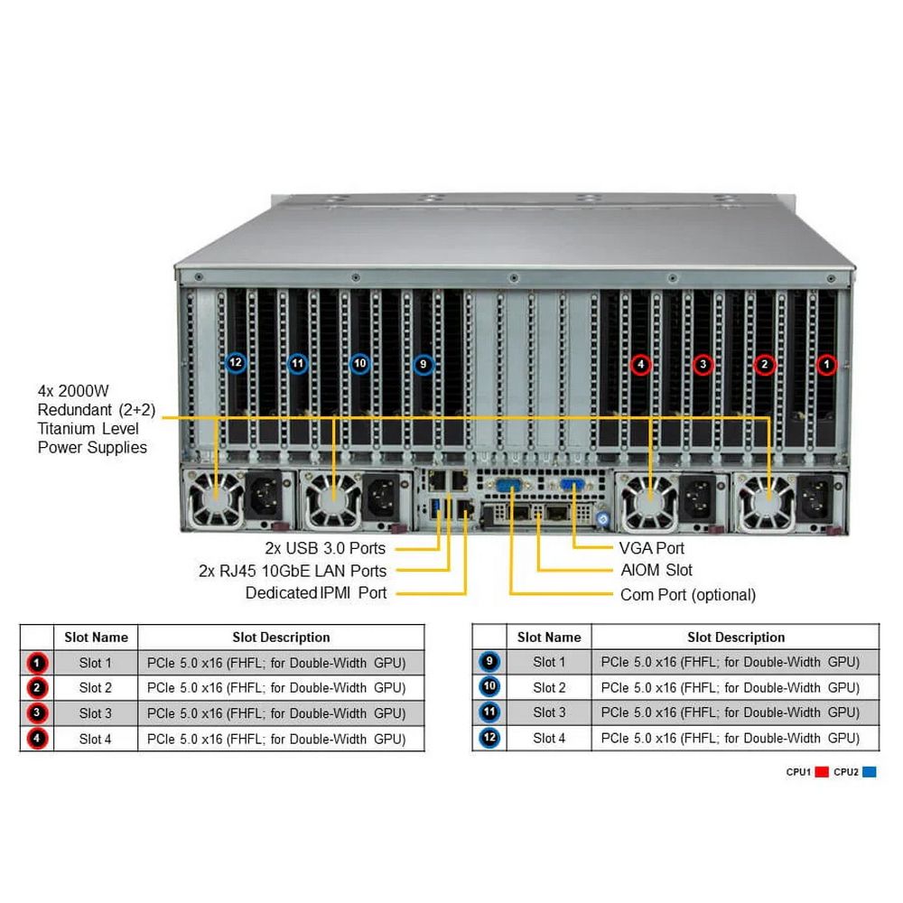 До 8 одно- иди двухслотовых графических ускорителей. Поддержка NVIDIA PCIe: H100 NVL, H100, RTX A4000, RTX 6000 Ada, RTX 5000, L40S, L4, A100. Поддержка AIOM/OCP 3.0