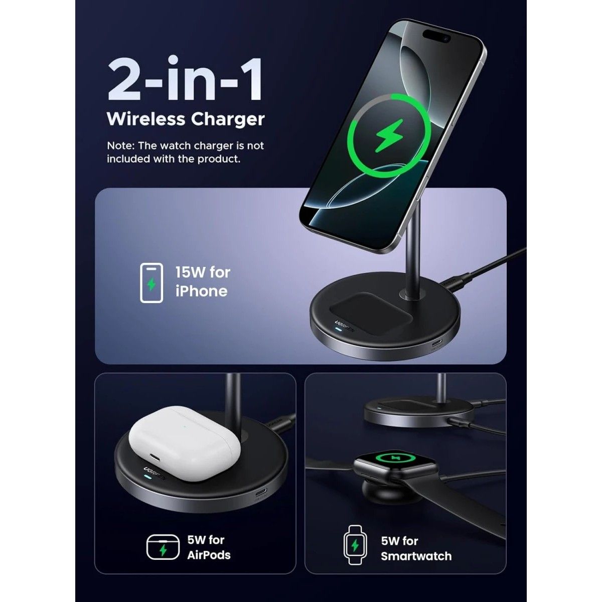 Подставка магнитная UGREEN W710 (45382) 2-in-1 15W Magnetic Wireless Charger для iPhone + AirPods. Ц