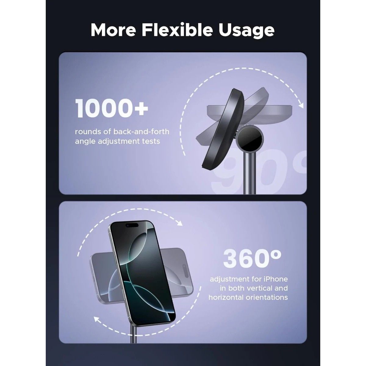 Беспроводная зарядка Qi2. Поддержка MagSafe. Отсоединяемый кабель. Регулировка наклона на 90°