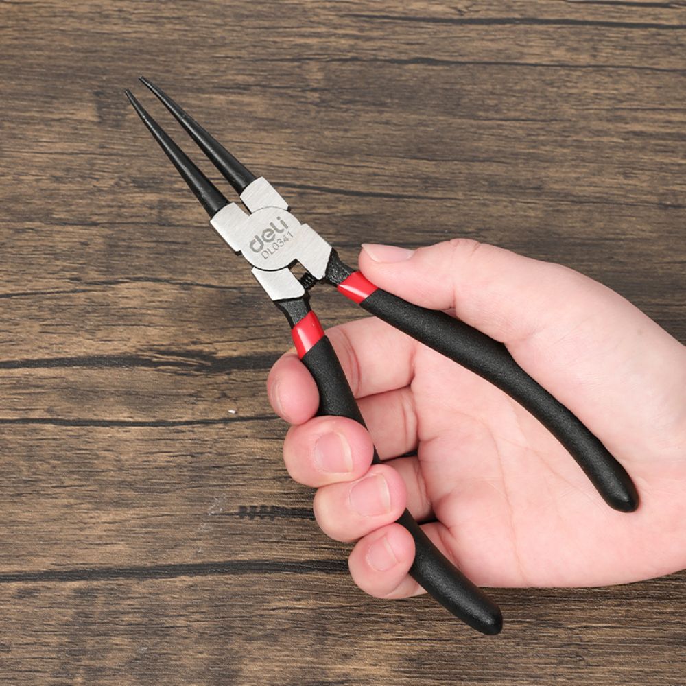 Прямой съёмник внутренних стопорных колец от Deli — это незаменимый инструмент для любого мастера или домашнего умельца. Он предназначен для быстрого и безопасного снятия внутренних стопорных колец с различных деталей и механизмов.