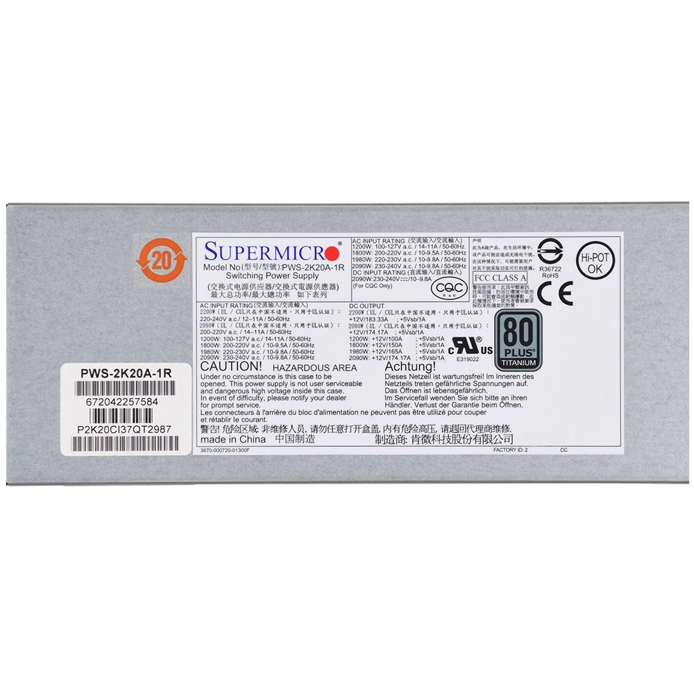 Блок питания SuperMicro PWS-2K20A-1R — это надёжное и эффективное решение для серверов.