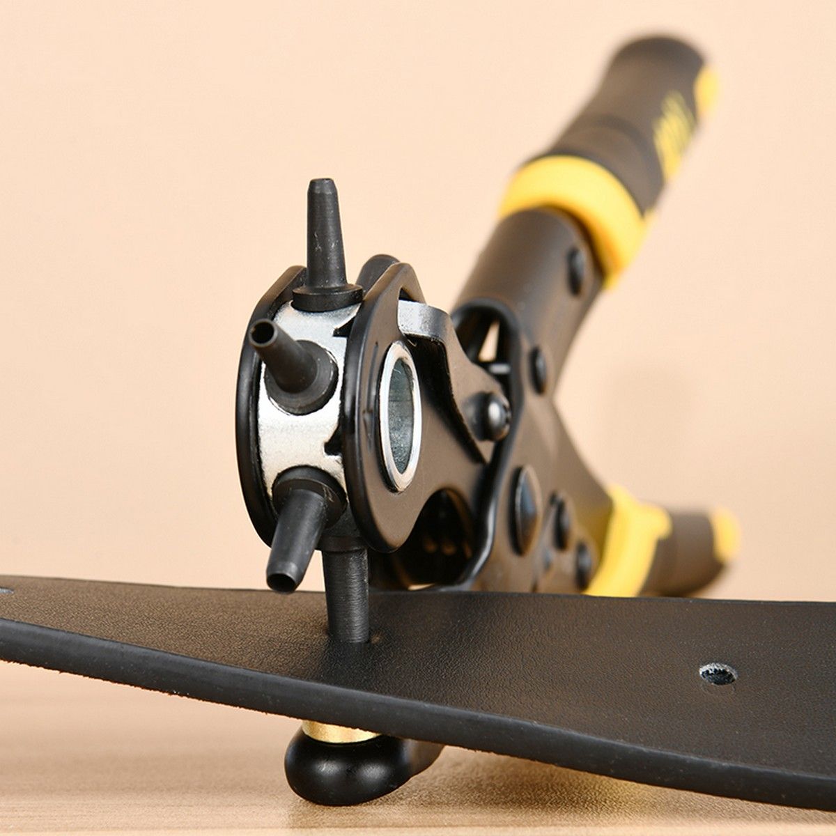 Револьверный дырокол для кожи 6-в-1 двухрычажный Deli DL1919A 225мм, диаметр пуансона: 2, 2,5, 3, 3,5, 4, 4,5мм, сталь Cr-V