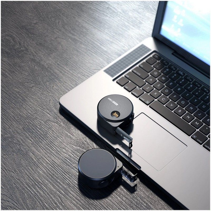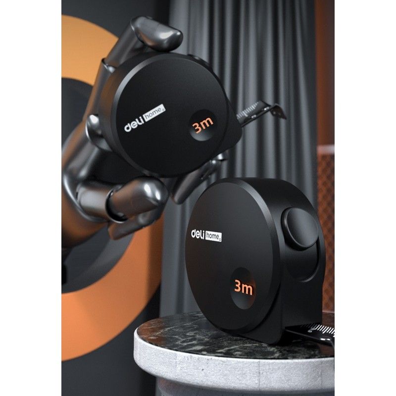 Рулетка "Home Series Black" Deli HT8316 3м х 16мм, эксклюзивный дизайн, корпус - высококачественный софттач пластик Bad Pack