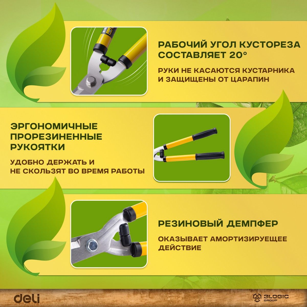 Садовые ножницы Deli — незаменимый инструмент для ухода за вашим садом. Они идеально подходят для обрезки веток, формирования кустов и других садовых работ.