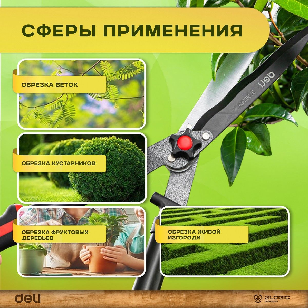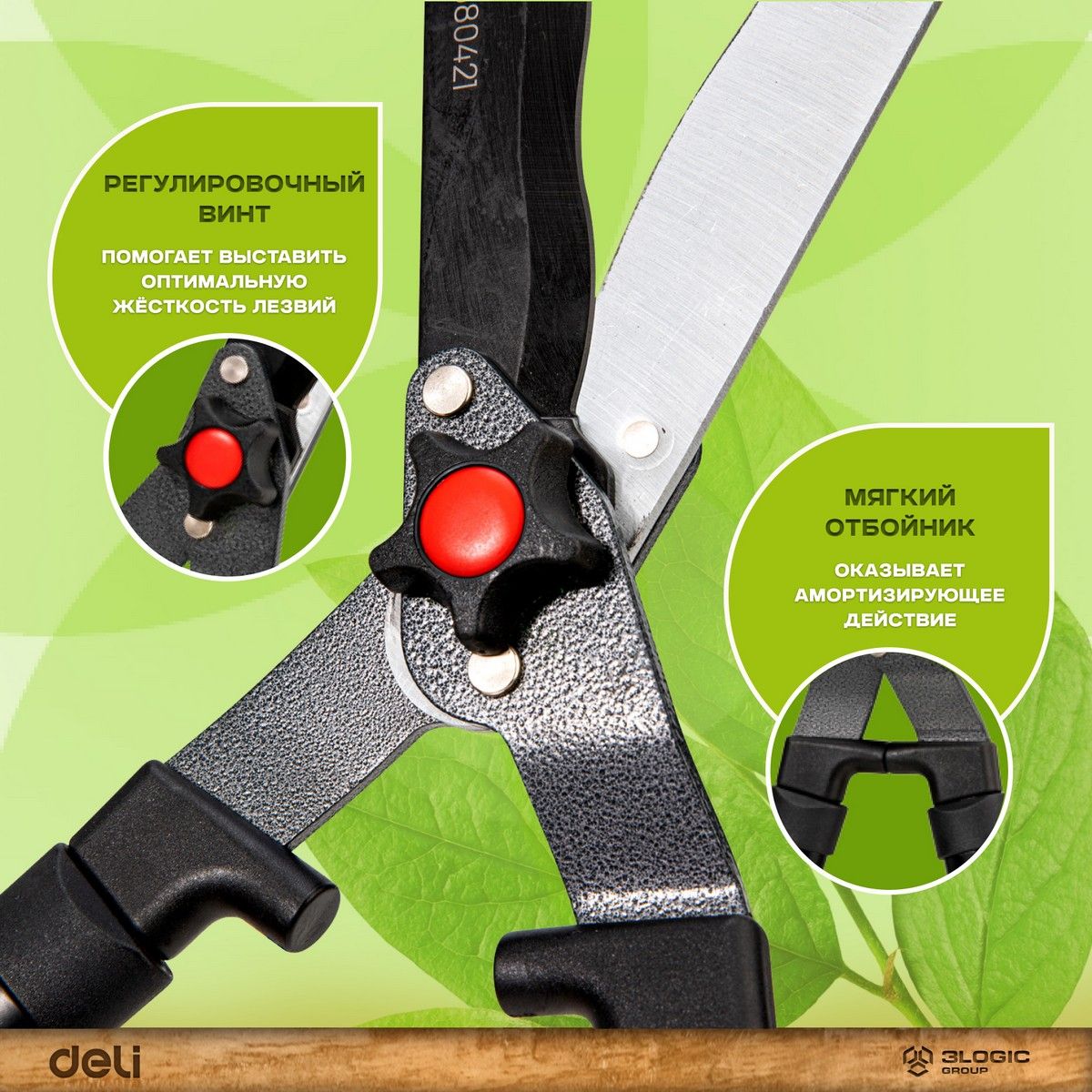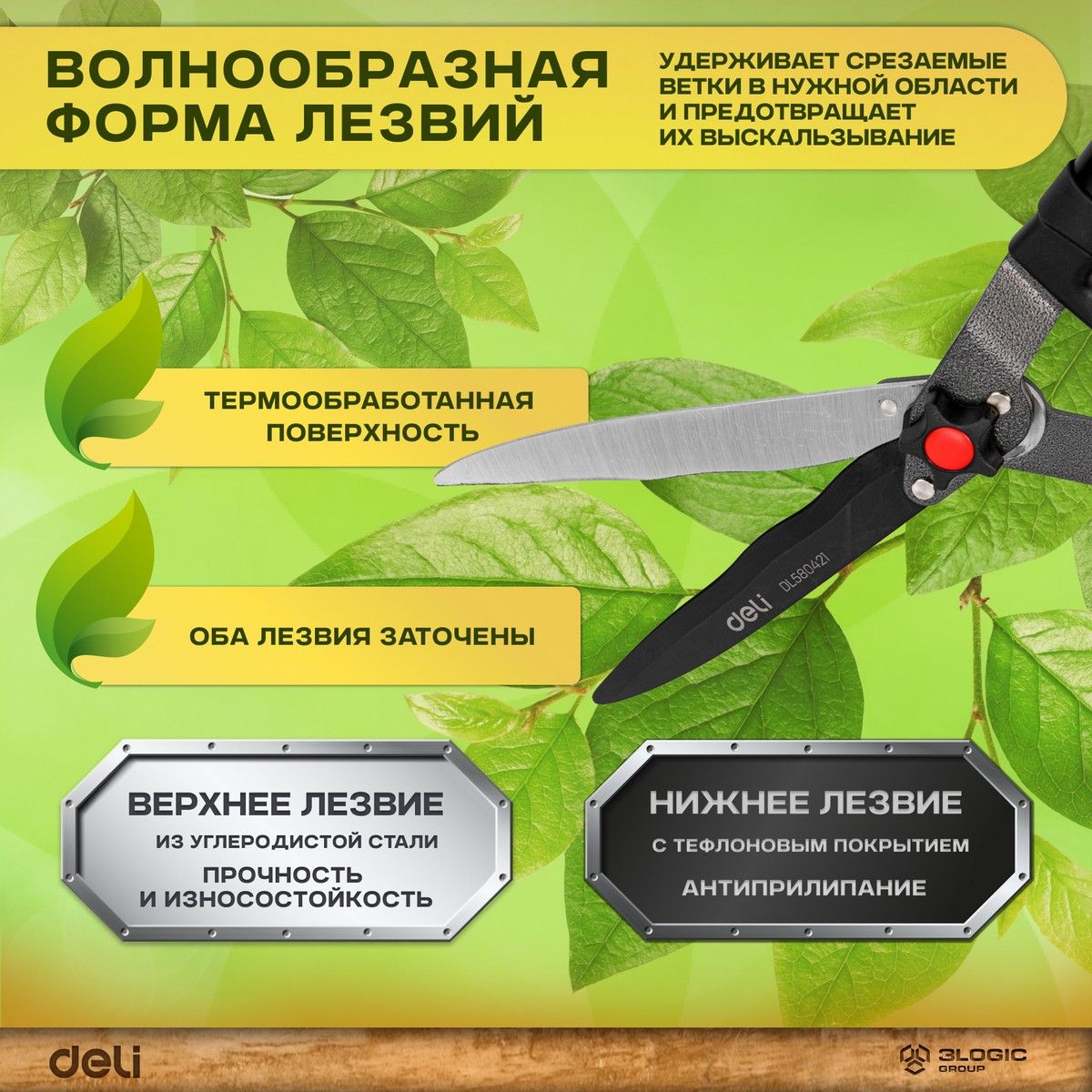 Садовые ножницы Deli DL580421 680мм, лезвия с тефлоновым покрытием, сталь 55С