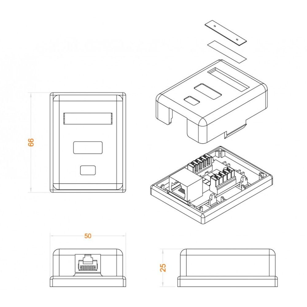 Название товара: Розетка компьютерная Hyperline SB1-1-8P8C-C6-WH