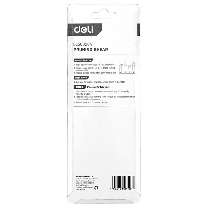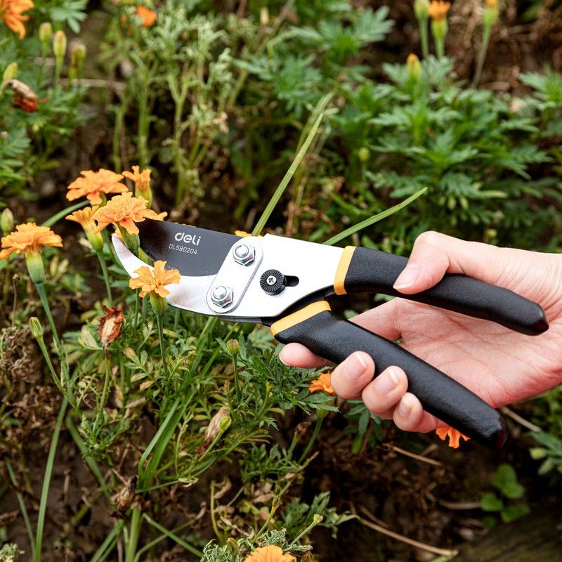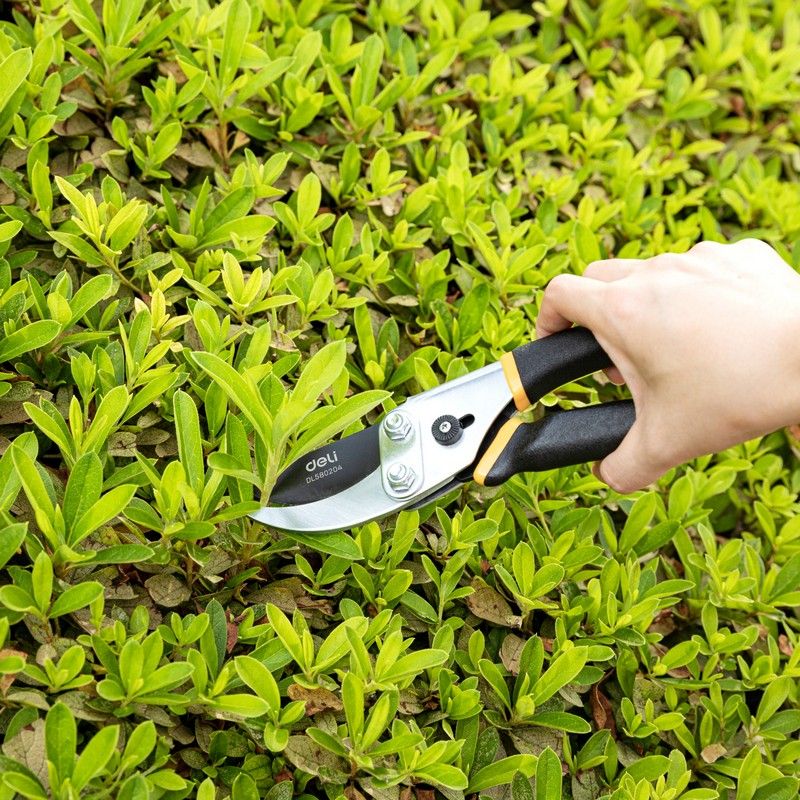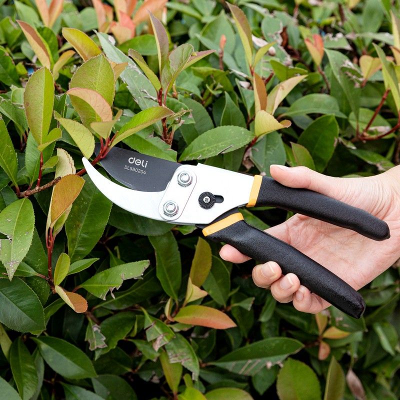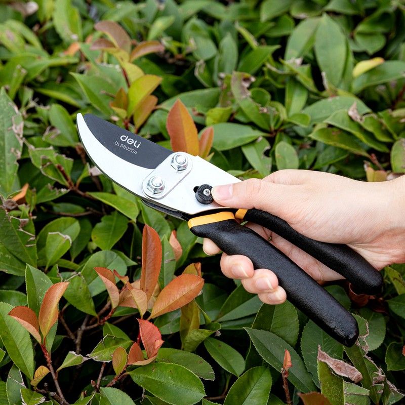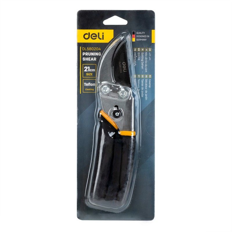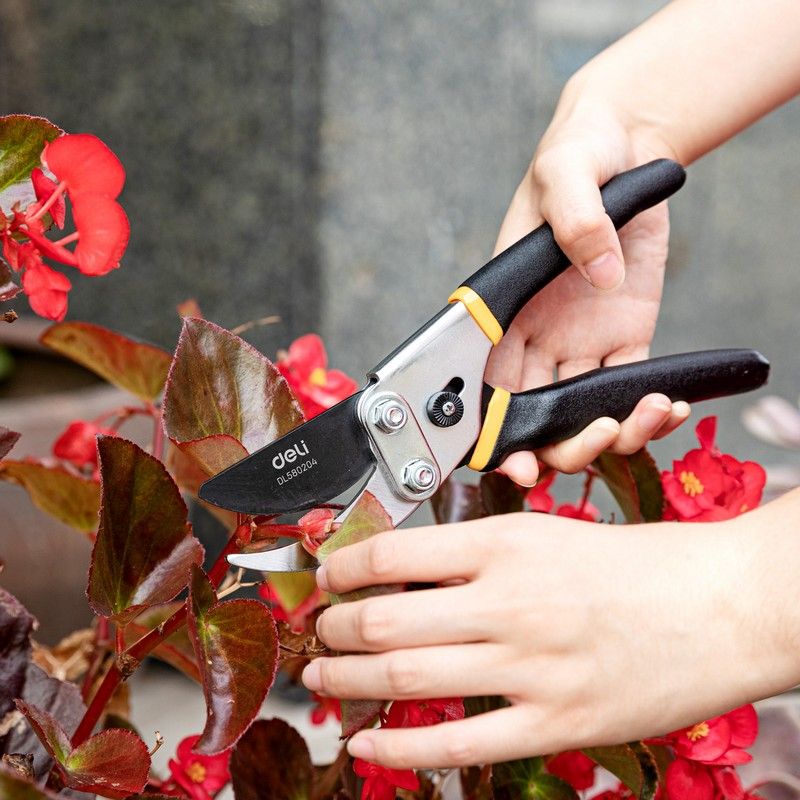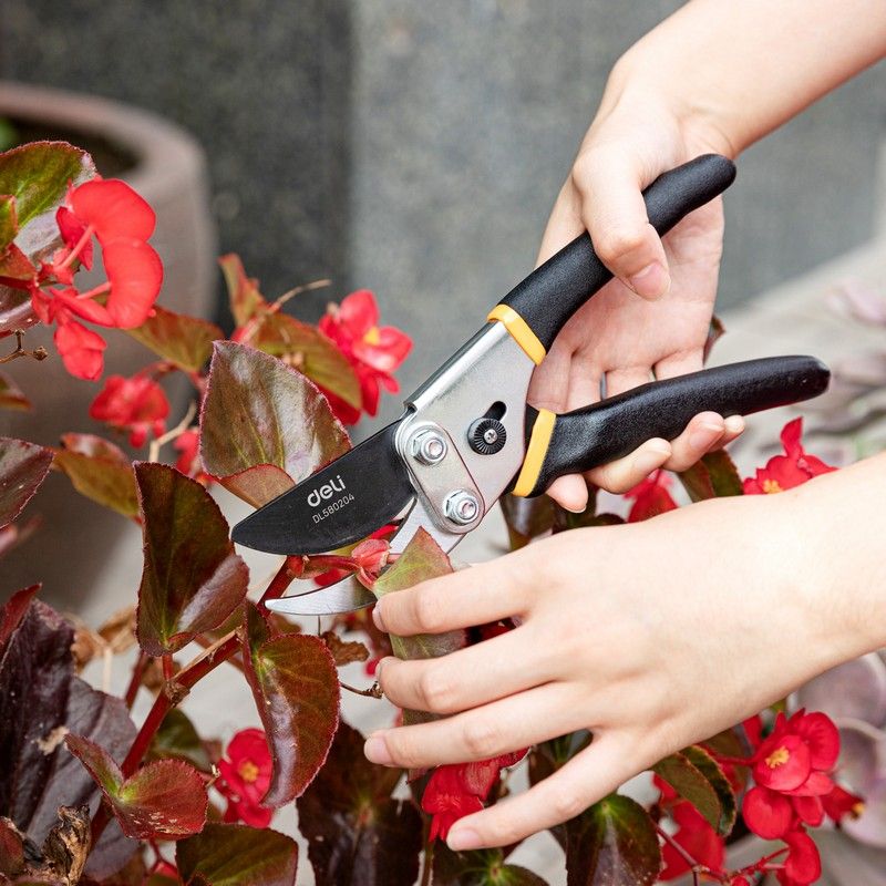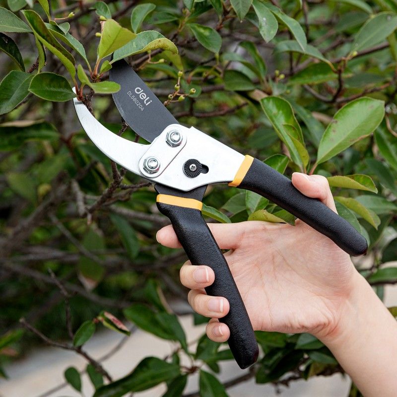 Секатор Deli предназначен для обрезки веток и стеблей. Лезвия с тефлоновым покрытием обеспечивают долговечность инструмента и защиту от коррозии.