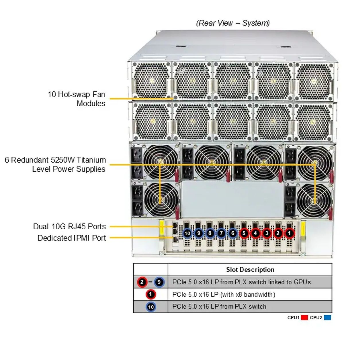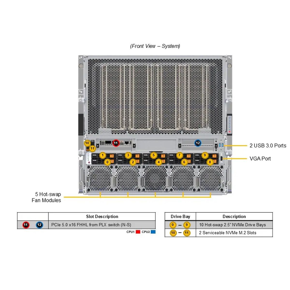 10 front hot-swap 2.5" PCIe 5.0 x4 NVMe drive bays
