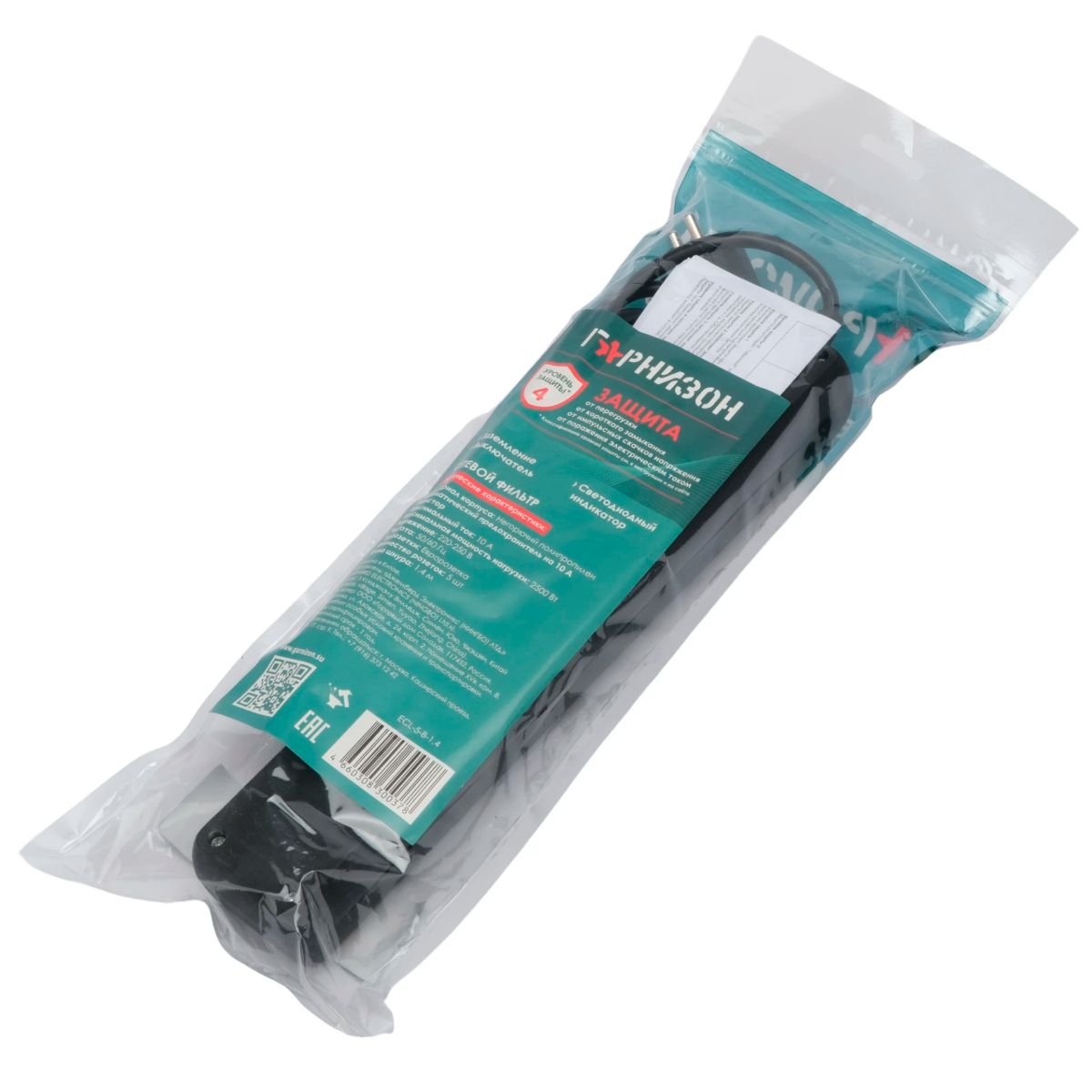 Сетевой фильтр Гарнизон ECL-5-B-1.4 черный, 5 розеток, 10А, 1,4м, ур.защиты 4, пакет