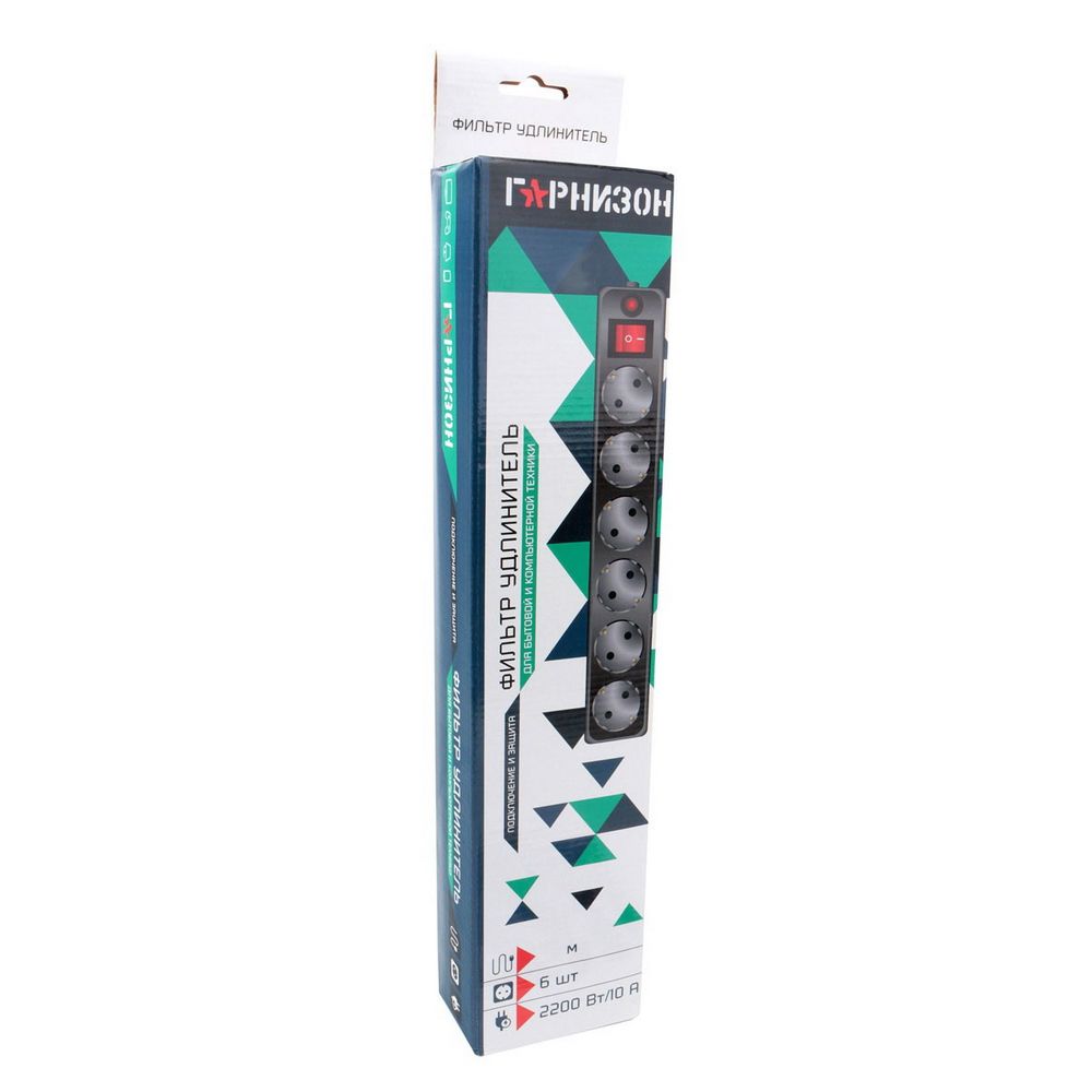 Сетевой фильтр Гарнизон ЕНB-15, 5.0 м, 6 розеток, чёрный