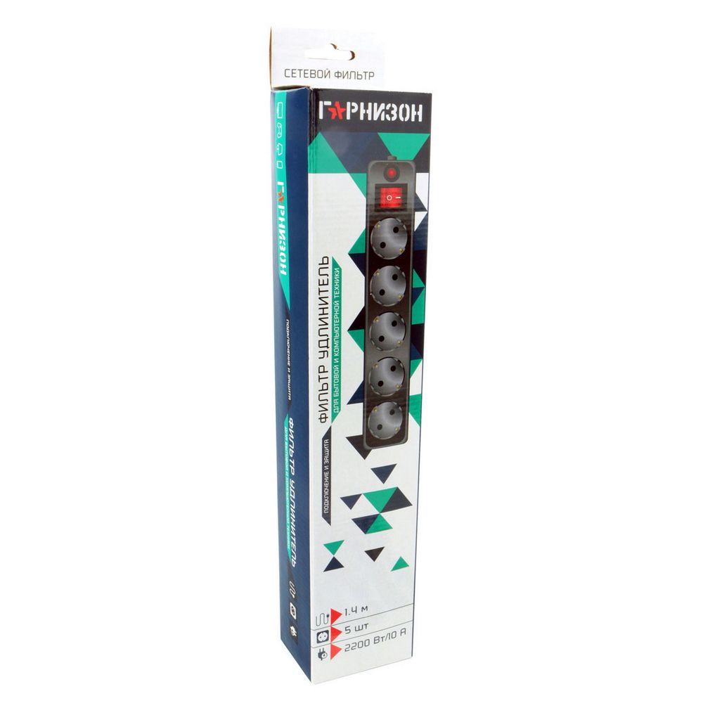 Сетевой фильтр Гарнизон ЕНLB-5, 1.4 м, 5 розеток, чёрный (074407)