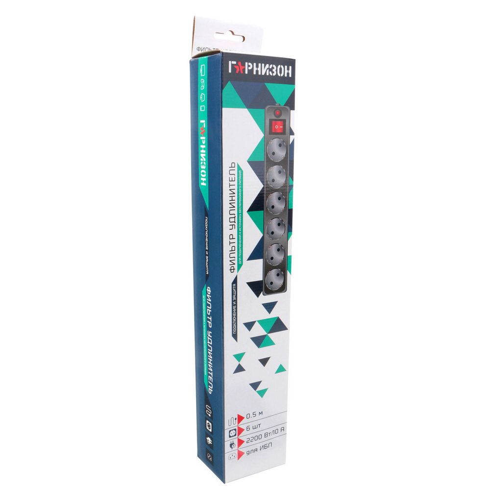 Сетевой фильтр Гарнизон ЕНВ-0, 0,5 м, 6 розеток, чёрный