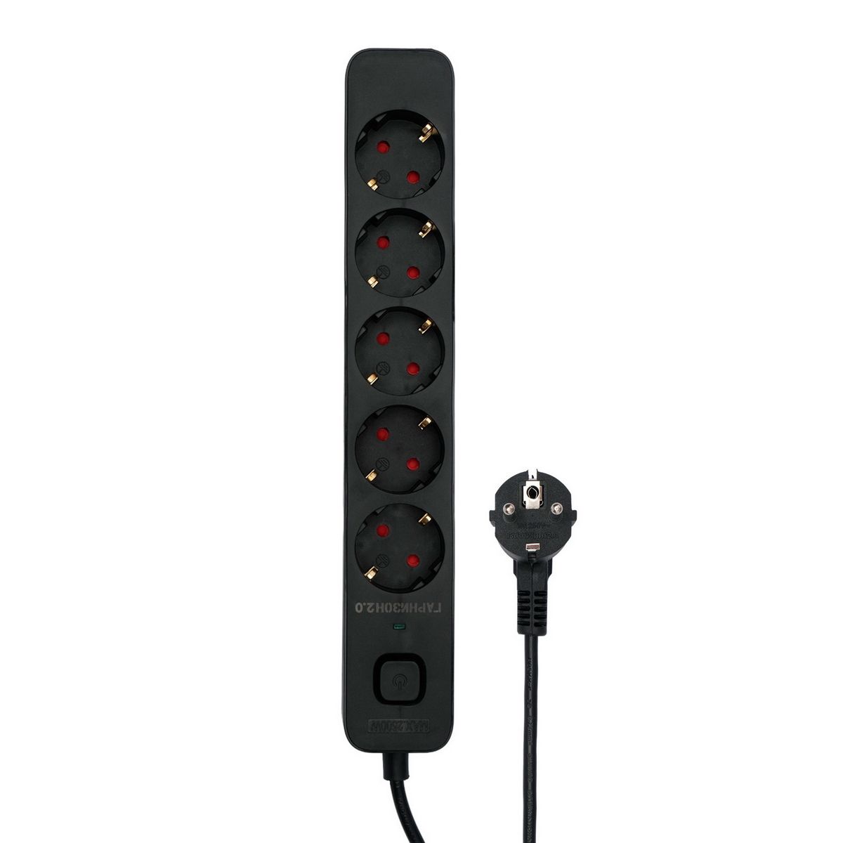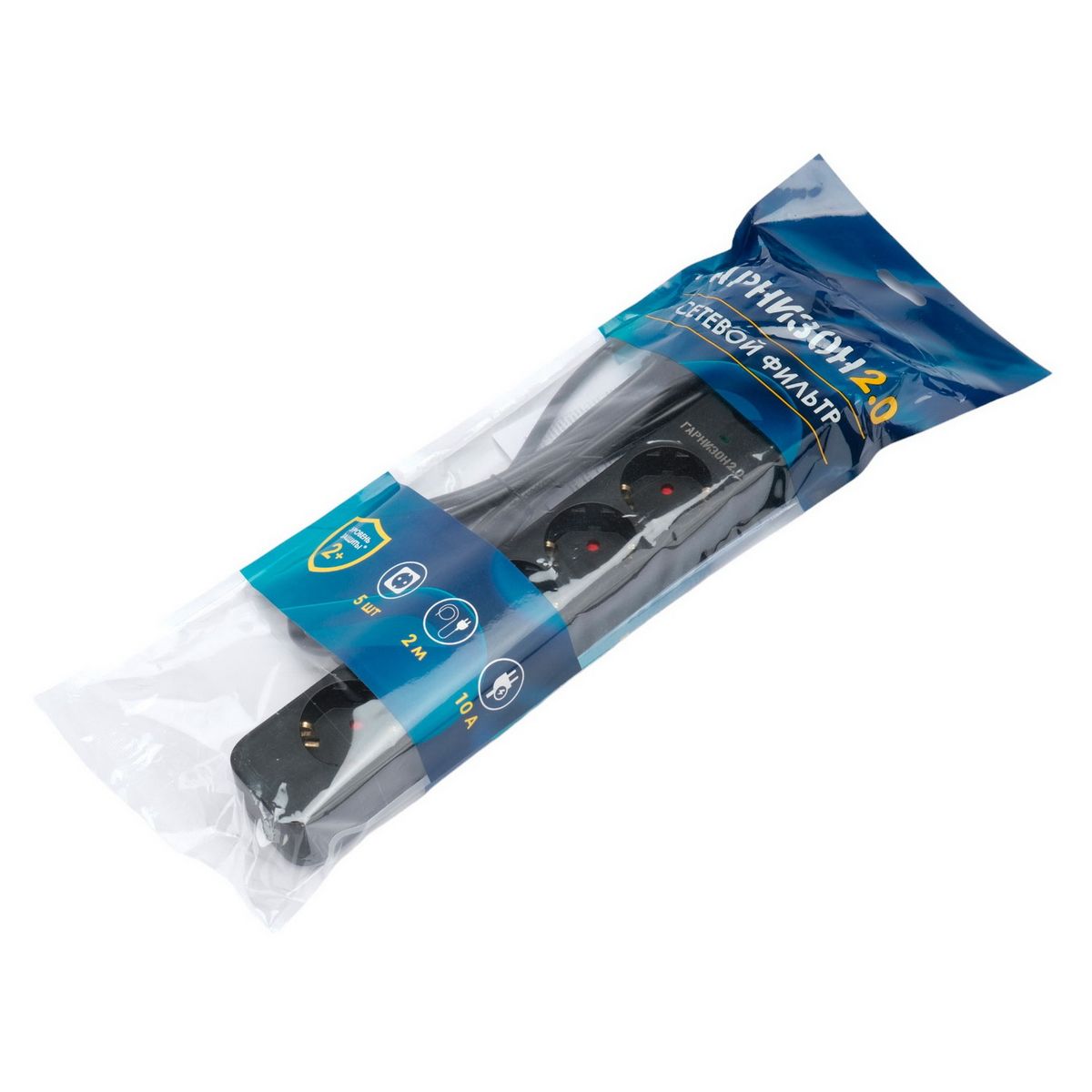 Сетевой фильтр Гарнизон EPS-5-B-2 черный, 5 розеток, 10А, кабель 2м, ур.защиты 2+, пакет