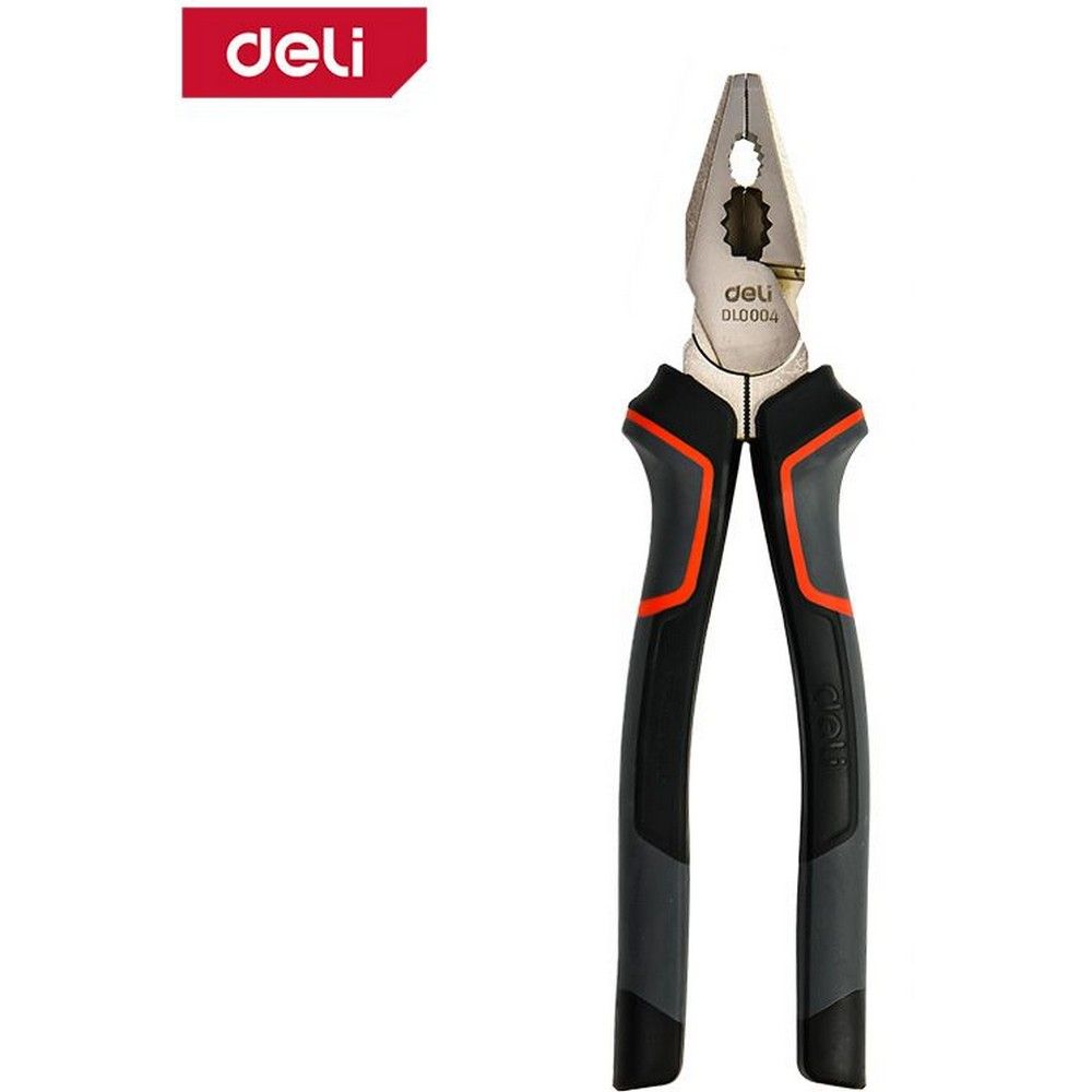 Комбинированные плоскогубцы Deli DL0004 180мм, Cr-V, эксцентриковый шарнир, антикоррозийное покрытие, трехкомпонентная прорезиненная рукоять