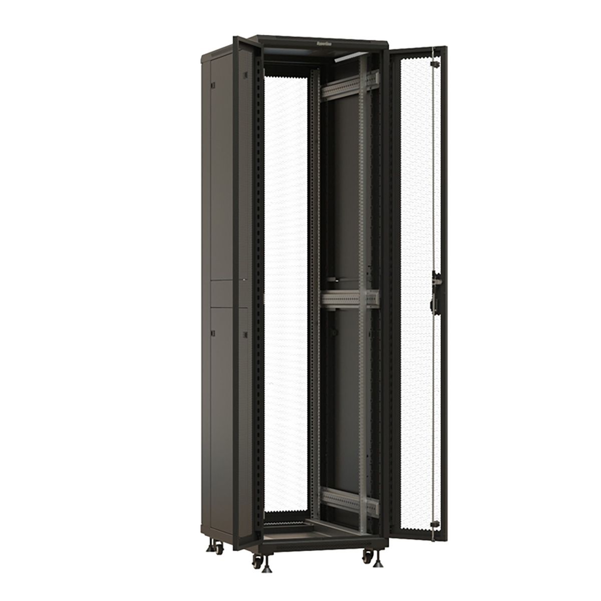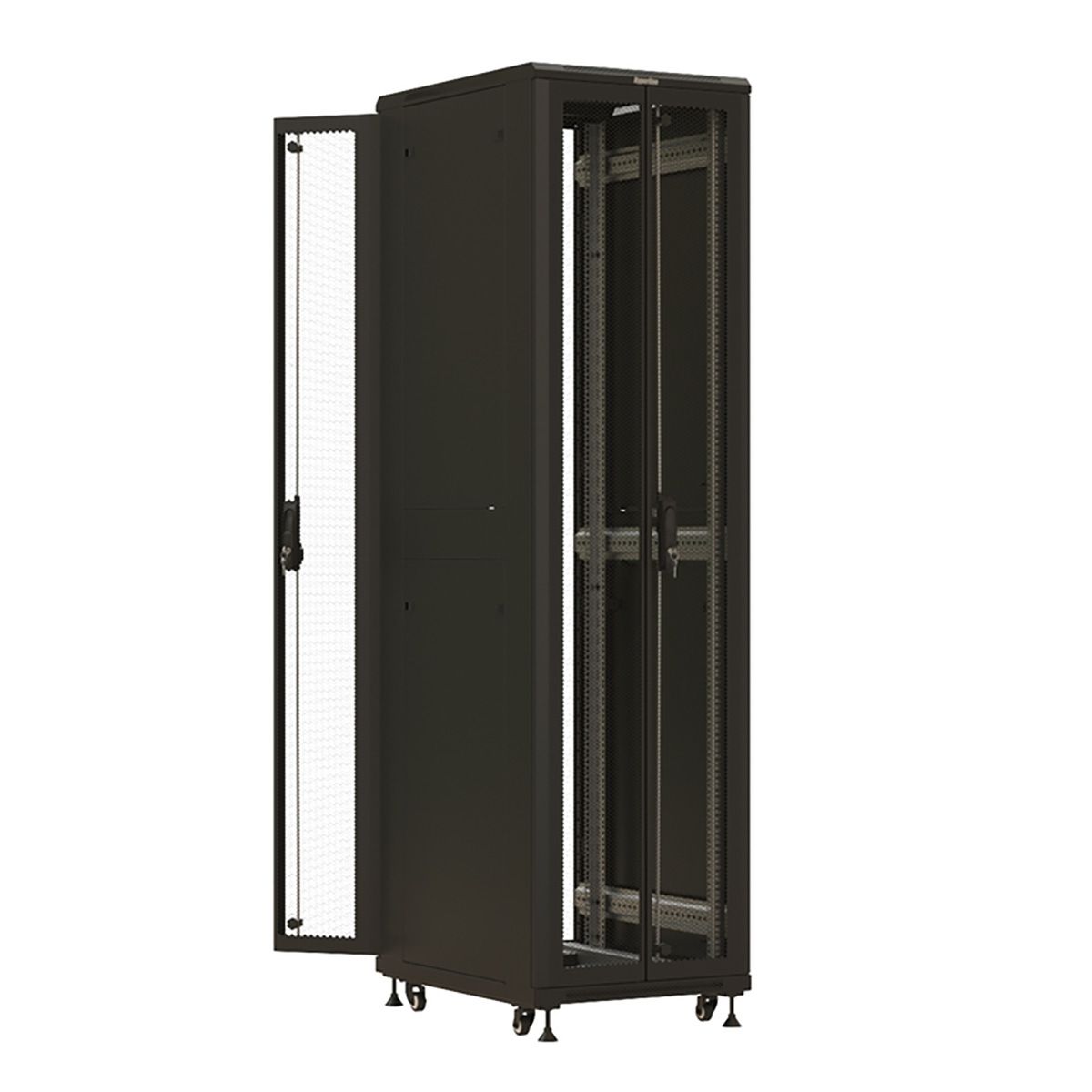 Шкаф Hyperline TTBR-4762-DD-RAL9004 напольный 19-дюймовый, 47U, 2277x600х1200 мм (ВхШхГ), передняя и задняя распашные перфорированные двери (75%), ручка с замком, цвет черный (RAL 9004)(разобранный)