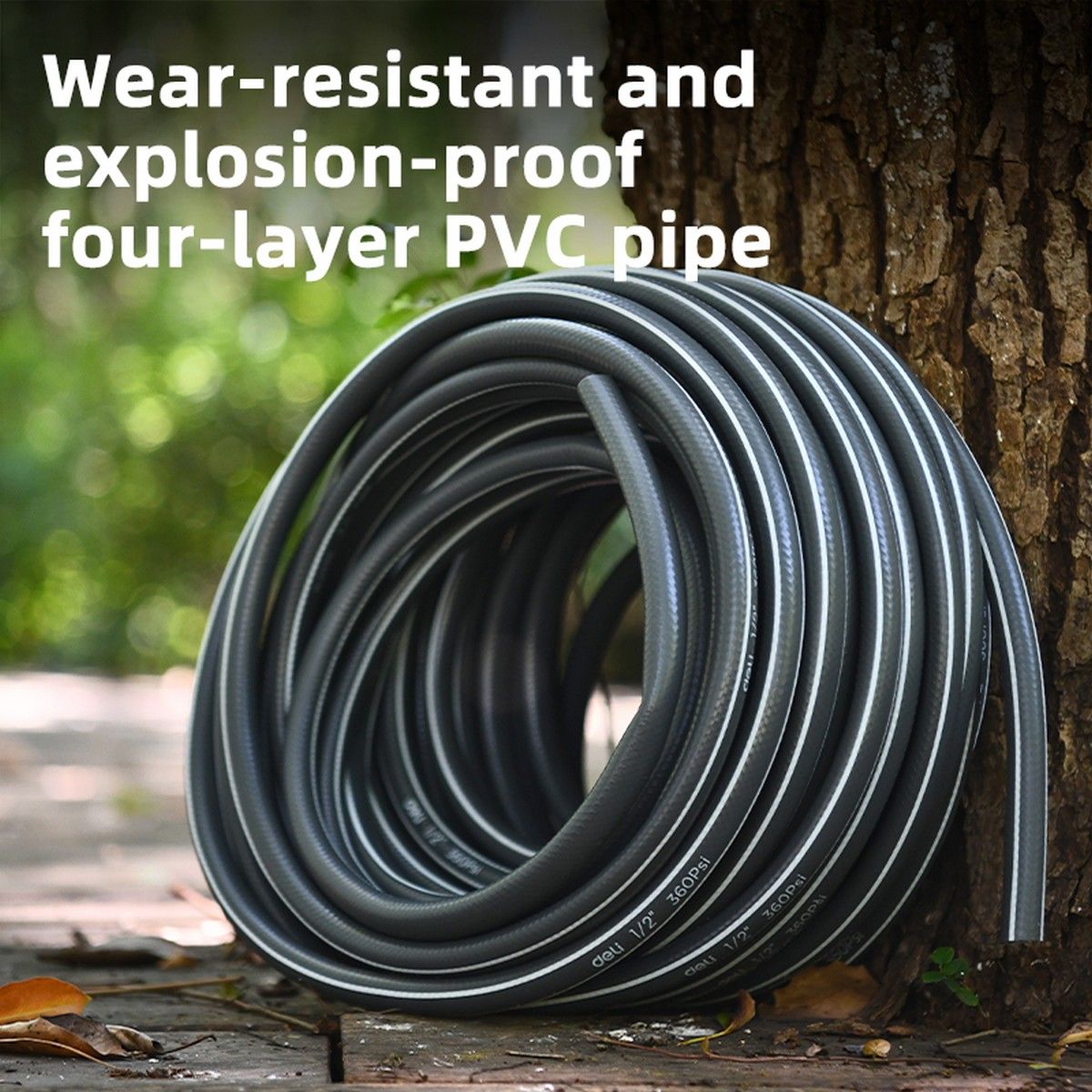 Шланг Deli DL8072-30 обладает высокой прочностью и устойчивостью к перегибам и механическим повреждениям благодаря своей армированной конструкции. Это обеспечивает долговечность и надёжность в использовании.