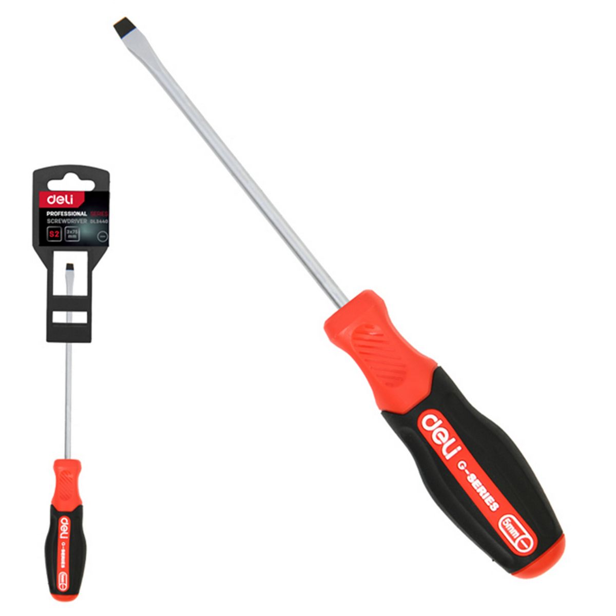 Шлицевая DL3440 SL3x75мм сталь S2, матовый стержень, двухкомпонентная прорезиненная рукоять