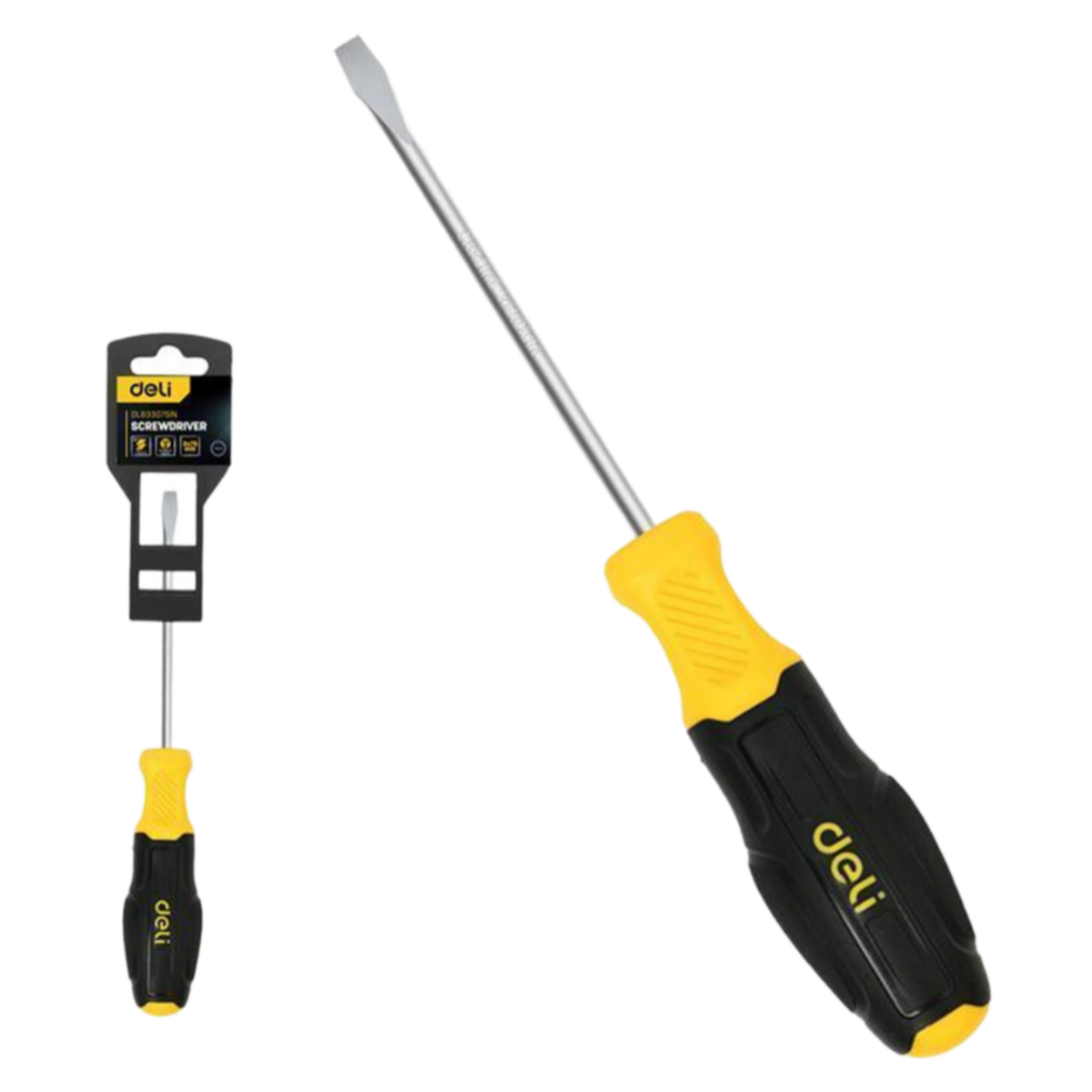 Шлицевая отвертка Deli DL6330751N 3х75мм сталь Cr-V, двухкомпонентная прорезиненная рукоять