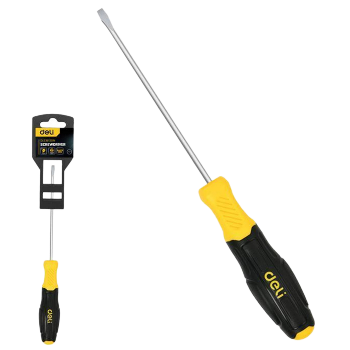 Шлицевая отвертка Deli DL6361251N 6х125мм сталь Cr-V, двухкомпонентная прорезиненная рукоять