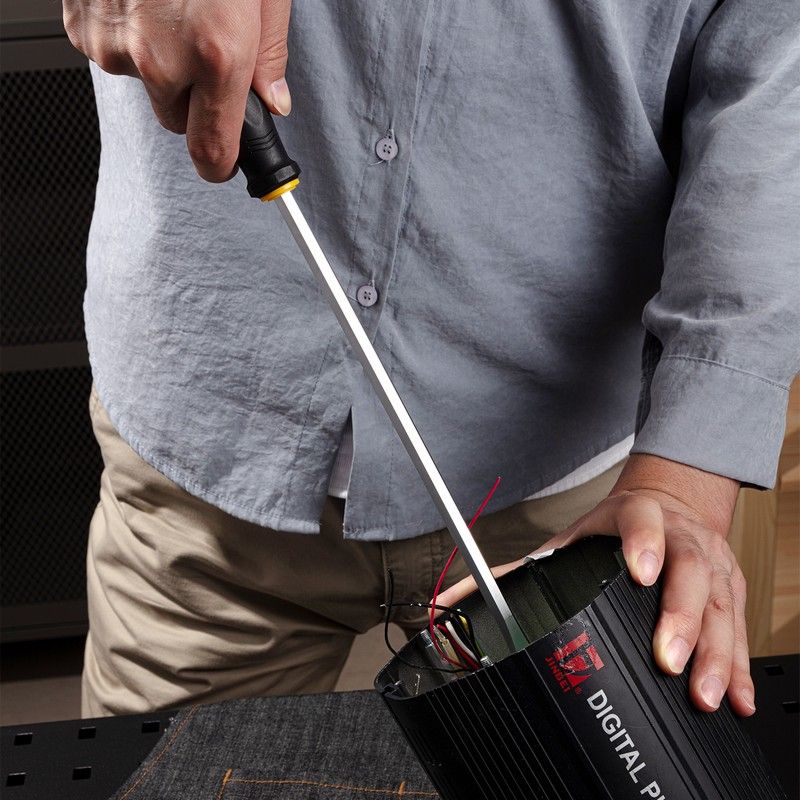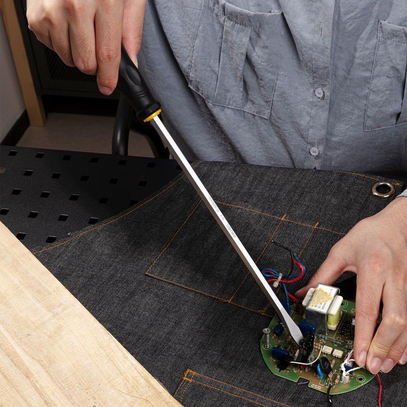 Отвёртка изготовлена из высококачественных материалов, что обеспечивает её долговечность и надёжность. Эргономичная ручка удобно лежит в руке и не скользит, что позволяет работать с инструментом даже в труднодоступных местах.