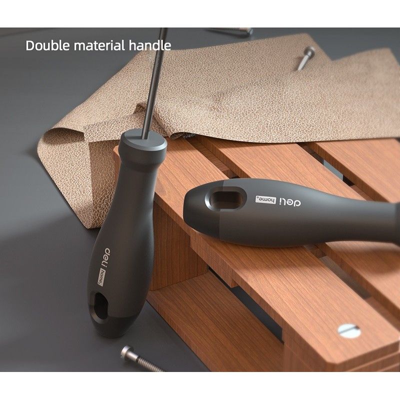 Шлицевая (плоская) отвёртка Deli Home Series Black HT1105 — незаменимый инструмент для любого мастера. Она имеет удобную рукоятку из высококачественного софт-тач пластика, которая обеспечивает надёжный хват и комфорт во время работы.