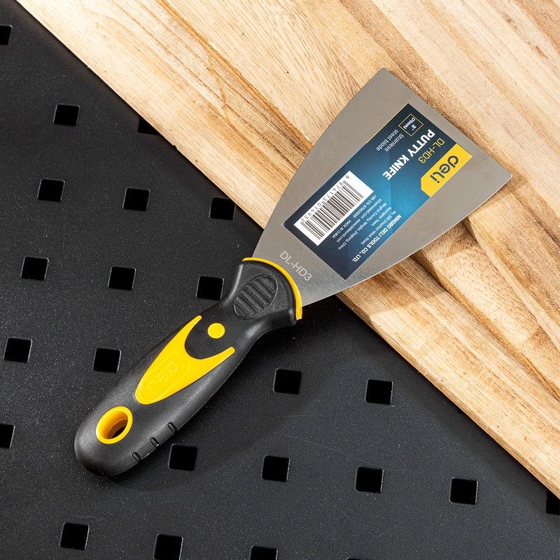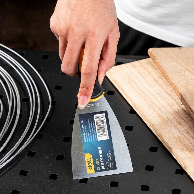 Описание товара: Шпатель Deli — это отделочный инструмент, который используется для нанесения и выравнивания различных строительных смесей, таких как шпаклёвка, штукатурка, клей и другие. Он изготовлен из нержавеющей стали, что обеспечивает прочность и долговечность инструмента.