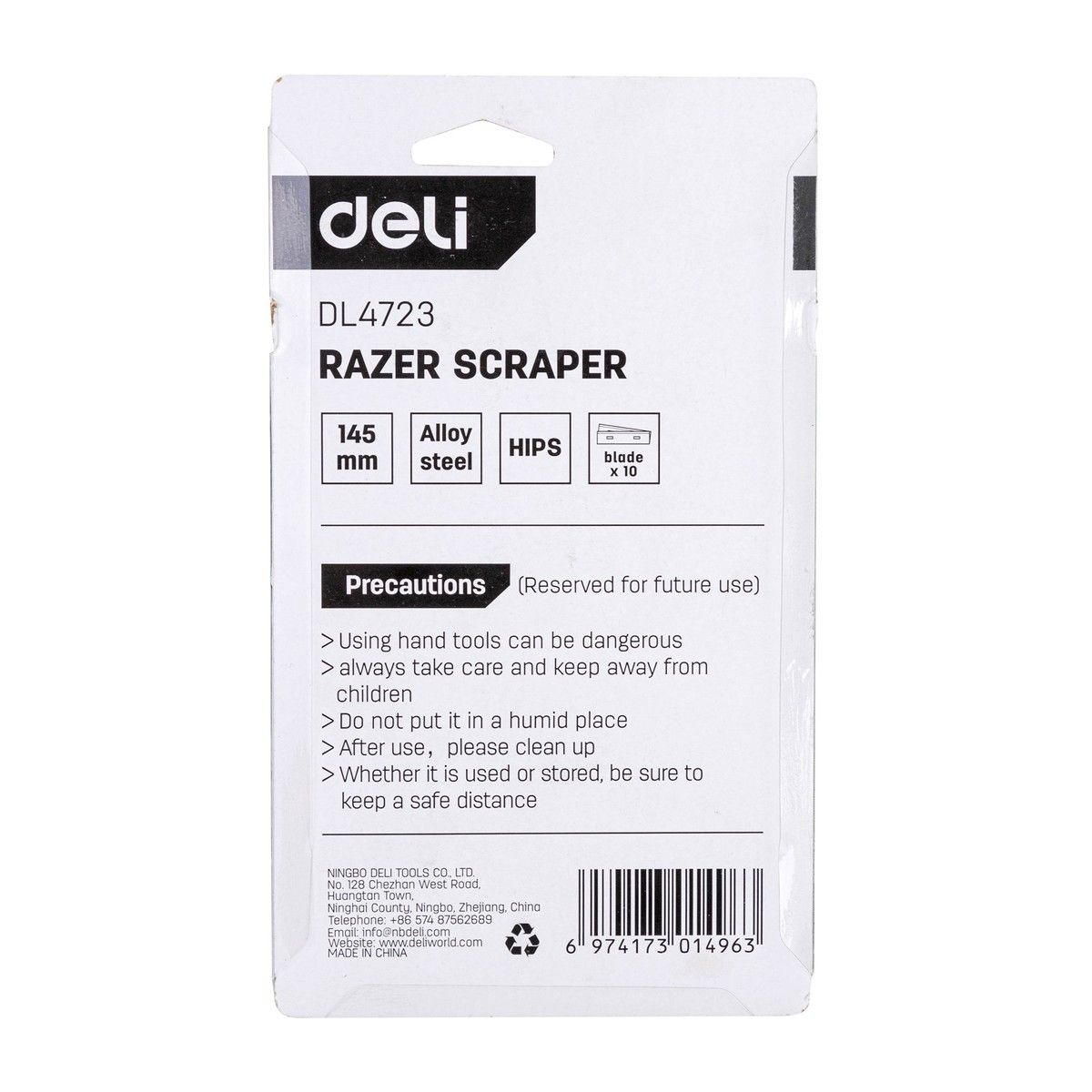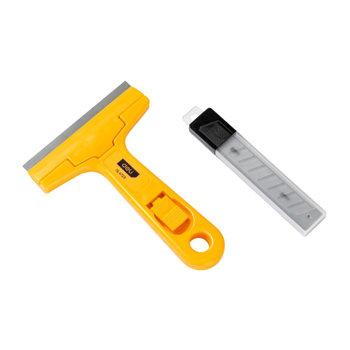 Скребок Deli DL4723 145мм + 10 лезвий, ширина лезвия 18мм, толщина лезвия 0,5мм