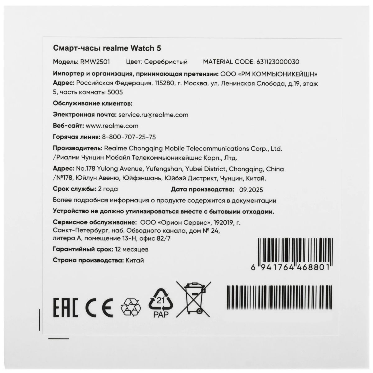 - Партномер : watch 5 серебряный