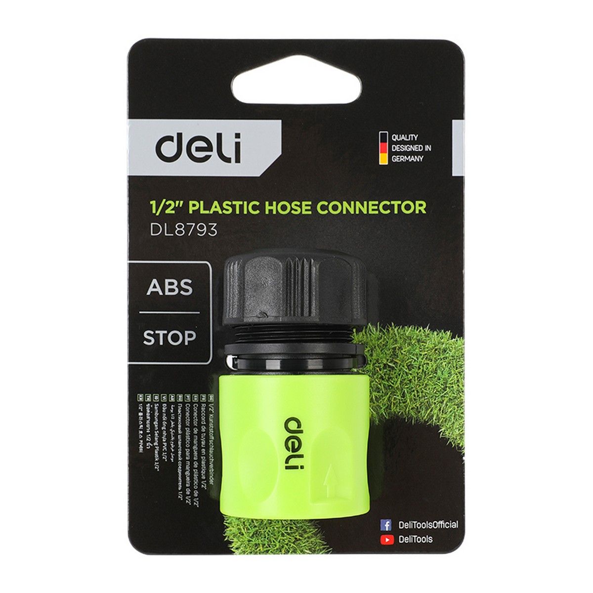 Соединитель быстросъемный с аквастопом для шланга 1/2" Deli DL8793 ударопрочный пластик