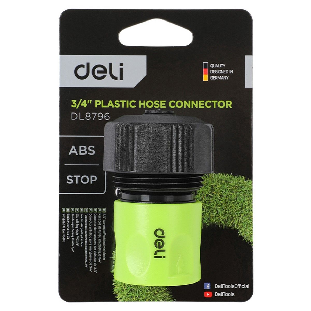 Соединитель быстросъемный для шланга с аквастопом 3/4" Deli DL8796 ударопрочный пластик