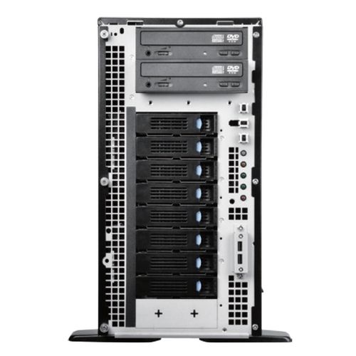 Три Middle HotSwap вентилятора с PWM 92x92x25мм. 8 HotSwap лотков с предустановленным 12Gb/s miniSAS HD Backplane-ом. Фронтальная дверца с замком.