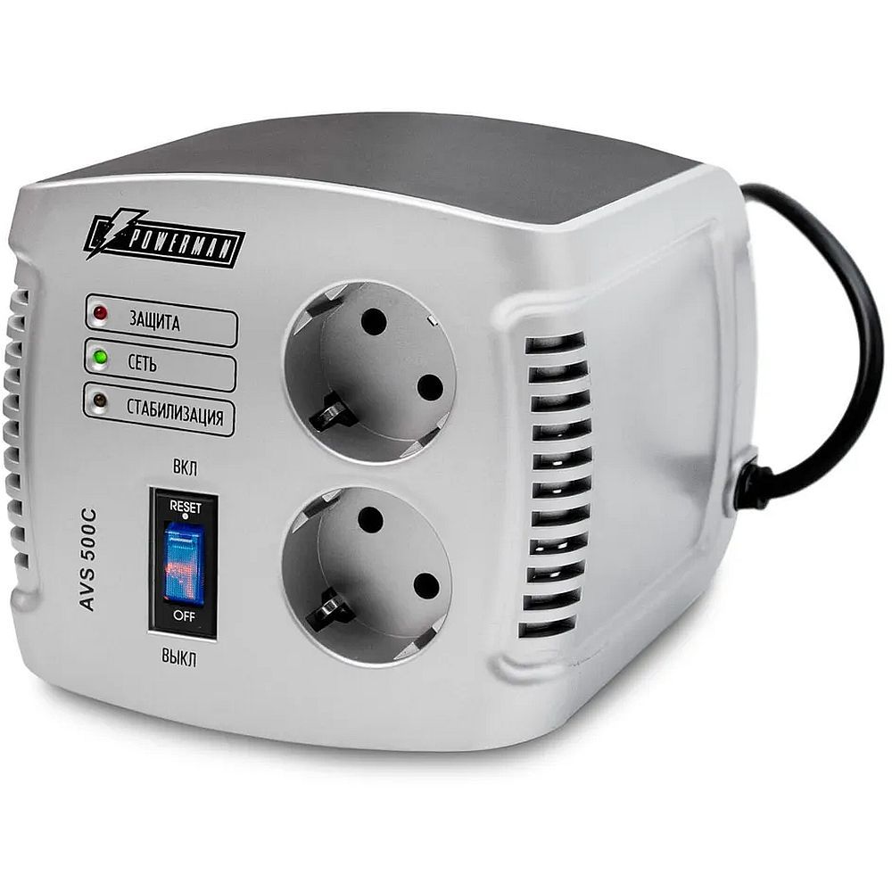 Powerman AVS 500 C — это стабилизатор напряжения релейного типа, который предназначен для защиты электрооборудования от скачков напряжения и короткого замыкания.