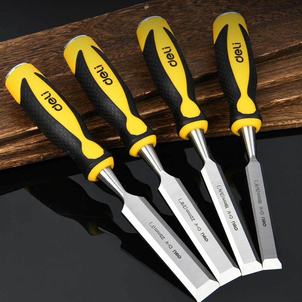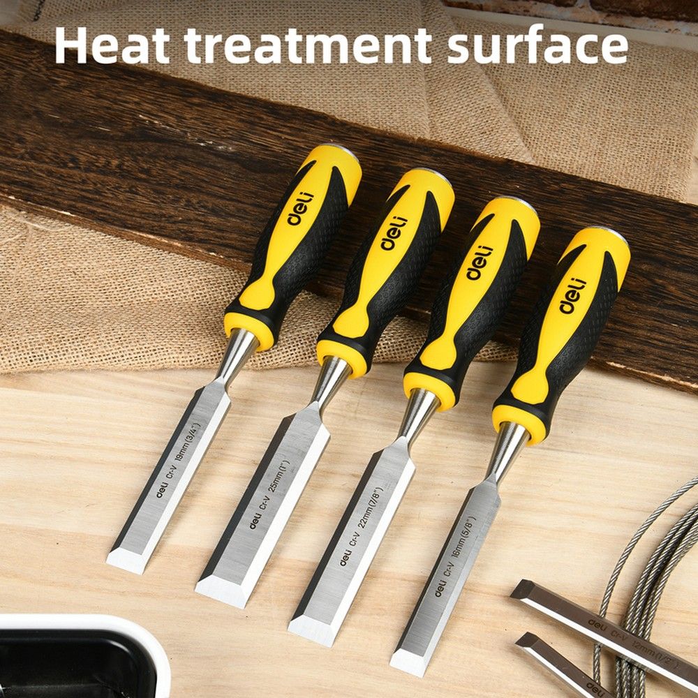 Стамеска плоская Deli DL6222-E1 ширина 22мм, длина 140мм, CrV, прорезиненная рукоять