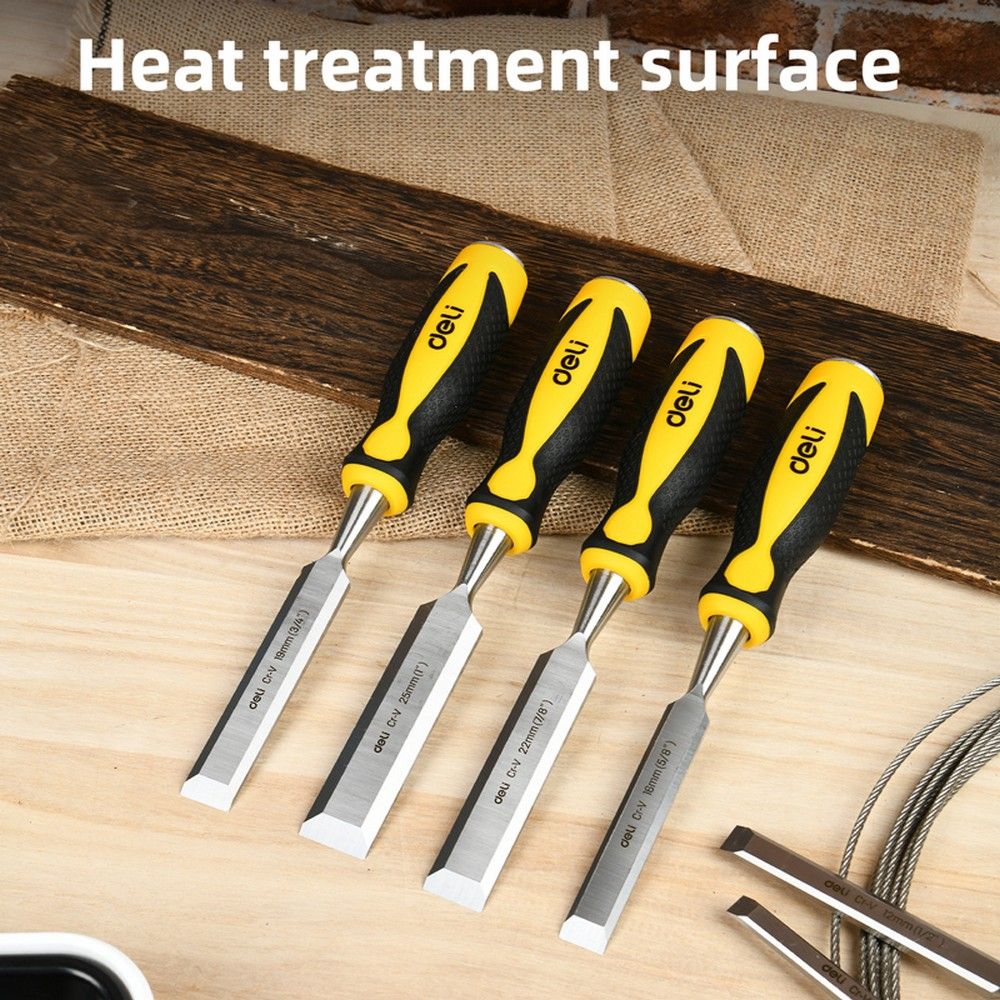 Стамеска плоская Deli DL6225-E1 ширина 25мм, длина 140мм, CrV, прорезиненная рукоять